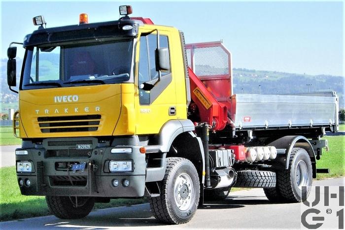 | Bemerkungen | M+Nummer M+29929 Lieferanten Fahrgestell Iveco Magirus AG, D-89079 Ulm Aufbau Moser AG Fahrzeugbau, CH-3612 Steffisburg Ladekran Haueter Kran AG, CH-8032 Zürich Aufbau 3-Seitenkipper mit Ladekran Ladekran Hersteller HMF Typ 1323 K3 12,7 tm Hubmoment 9,90 m Ausladung 7,00 m Hydraulischer Auszug 50 l/min Pumpenleistung 410° Schwenkbereich 168 kNm Schwenkmoment 290 bar Betriebsdruck 1'950 kg Gewicht |
