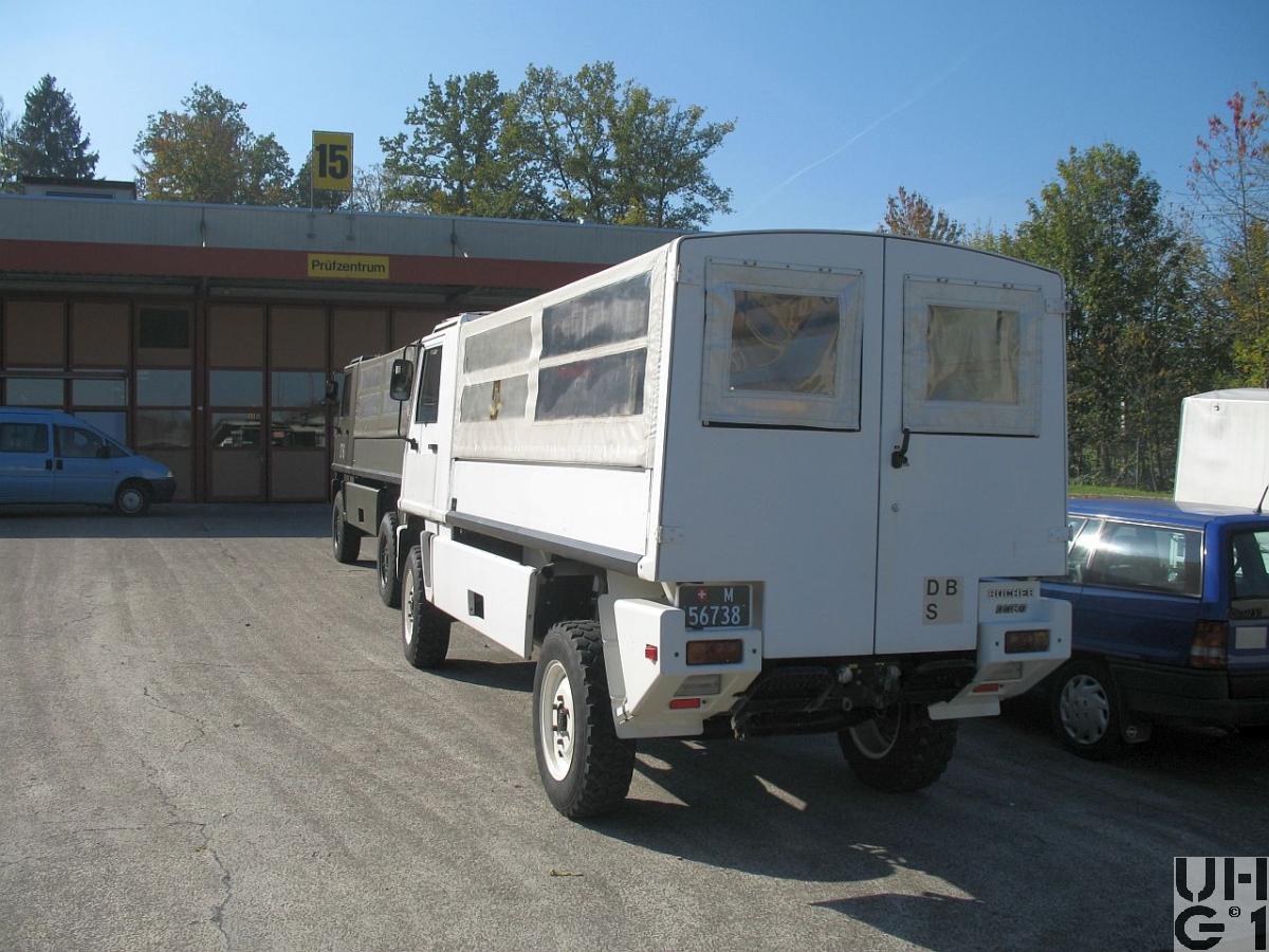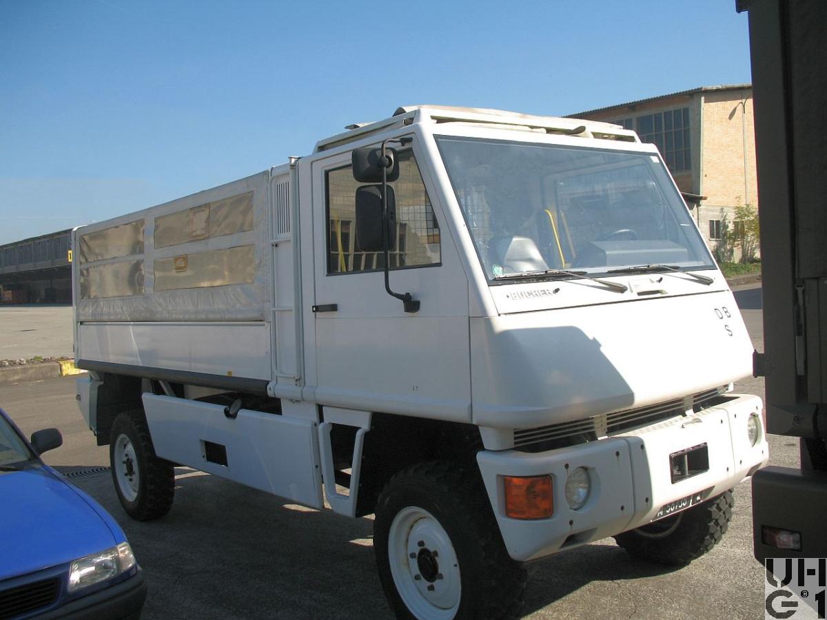| Getriebe | Hauptgetriebe Hersteller Mercedes Benz Typ W 4 A 028 4 Gang Automat hydraulisch gesteuert 4 Vorwärtsgänge 1 Rückwärtsgang Übersetzung 1. Gang 3,871:1 2. Gang 2,247:1 3. Gang 1,436:1 4. Gang 1,000:1 R. Gang 5,586:1 Verteilergetriebe Hersteller Bucher Typ V-2GS-TD 15 Synchronisiertes 2- Stufen Verteilergetriebe mit Torsen Längsdifferential 1 Stufe Strassenstufe 1 Stufe Berg- / Geländestufe Übersetzung 0,71:1 Strassengang 1,42:1 Geländegang |