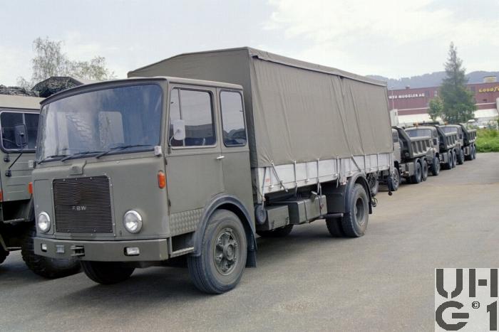 | Bemerkungen | Lieferanten Fahrgestell FBW, CH-8620 Wetzikon Aufbau Krapf Carrosseriewerk, CH-8580 Amriswil Fahrzeuge mit und ohne Hebebühne im Einsatz Chassis Nummern 1969: 5641 Prototyp 1970: 5642 Kabine von Frech-Hoch Sissach 1970: 5643 bis 5740 1971: 6034 bis 6082 1972: 6083 für Pulverfabrik Wimmis 1972: 6084 M+ Nummern A+ 40002 Prototyp M+ 63692 M+ 63693 bis M+ 63787 M+ 63789 bis M+ 63837 M+ 63838 Später A+ 44420 A+ 44421 bis A+ 44516 A+ 42700 bis A+ 42748 A+ 42749 Datenquelle Jörg Biegger FBW Fahrzeuglexikon 4 (1968-1985) http://www.hnf.ch |