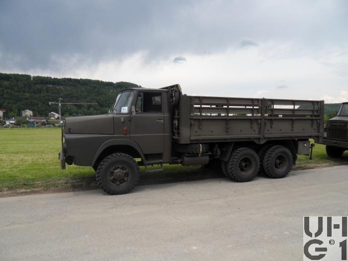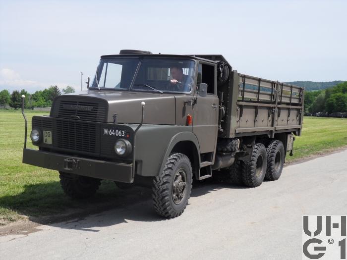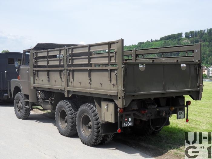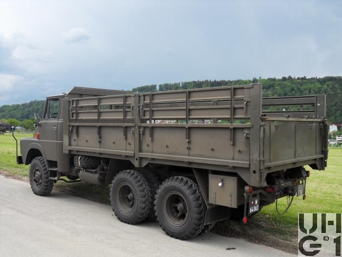 | Bemerkungen | Lieferanten Fahrgestell Henschel-Werke, D-34117 Kassel Aufbauten Diverse Einsatz Im Einsatz bei den Genietruppen für den Transport der Schlauchbootbrücke 61 Anzahl Es sind total 637 Henschel angeschafft worden M+Nummern 1. Serie: 1963 - 1964 M+64000 bis M+64209 2. Serie: 1969 - 1971 M+64210 bis M+64636 Stückzahlen 1963: 5 Stück 1964: 205 Stück 1969: 40 Stück 1970: 360 Stück 1971: 27 Stück Geschichte Die 5 Fahrzeuge die 1963 geliefert werden haben noch eine einteilige Frontscheibe und hereingesetzte Kotflügel, damit die Fahrzeugbreite von 2300 mm eingehalten werden konnte Die Serien Fahrzeuge besitzen dann eine geteilte Frontscheibe und normale Kotflügel, die 5 ersten Fahrzeuge werden dann angeglichen Das Gesamtgewicht der ersten Serie von 1963 - 1964 beträgt 17000 kg Die folgenden Serien haben dann ein Gesamtgewicht von 18000 kg Die Schweizer Typenbezeichnung des Fahrzeuges lautet HS 3-14 HA-CH HS = Henschel 3= 3-Achser 14 = 14 Tonnen Tragfähigkeit HA = Hauber - Allrad CH = Schweizer Ausführung Die ältere Motorbezeichnung lautet 520D6-CH 520 = Konstruktionsnummer D = Diesel 6 = Anzahl Zylinder CH = Schweizer Ausführung Die neuere Motorbezeichnung lautet 6R1215D 6 = Anzahl Zylinder R = Reihenmotor 12 = Bohrung 15 = Hub D = Diesel |