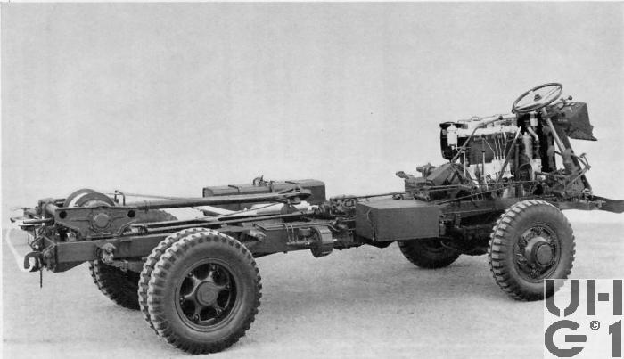 | Achsen | Vorne Hersteller FBW Typ KX Starrachse Banjoachse Antriebsachse mit Kegelraddifferential und einfacher Rücksetzung Untersetzung 6,57:1 Radantrieb über homokinetische Doppelkreuzgelenke Halbelliptische Längsblattfedern Felgen 7.00 - 20 Trilex Stahlguss Felgen Bereifung Firestone Super All Traction 8.25 - 20, 12 Ply Einfachbereifung Hinten Hersteller FBW Typ KX Starrachse Banjoachse Antriebsachse mit Kegelraddifferential und einfacher Rücksetzung Untersetzung 6,57:1 Radantrieb über Differentialwellen Halbelliptische Längsblattfedern Differentialsperre Pneumatisch betätigt Felgen 7.00 - 20 Trilex Stahlguss Felgen Bereifung Firestone Super All Traction 8.25 - 20, 12 Ply Doppelbereifung |