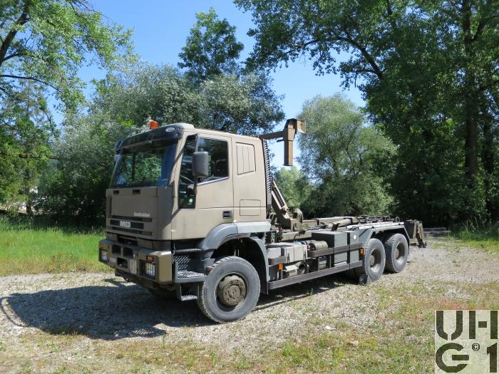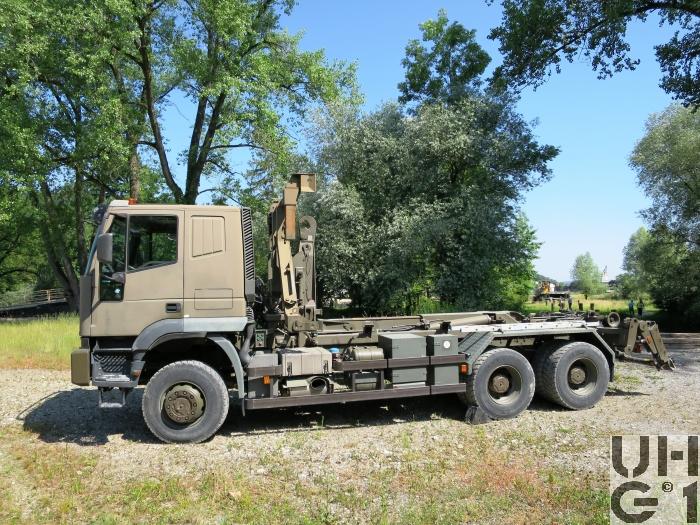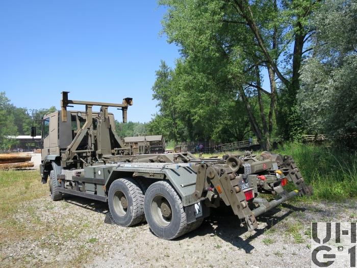 | Bemerkungen | Lieferanten Fahrgestell Iveco Magirus AG, D-89079 Ulm Aufbau Armin Notter AG, CH-5623 Boswil Aufbau Wechselabrollaufbau mit integriertem Container Handling System Das Hakengerät ist für das Handling von Abrollbehältern mit Hakenaufnahme sowie für ISO-Container mit Adapter geeignet und wird von der Truppe bedient |