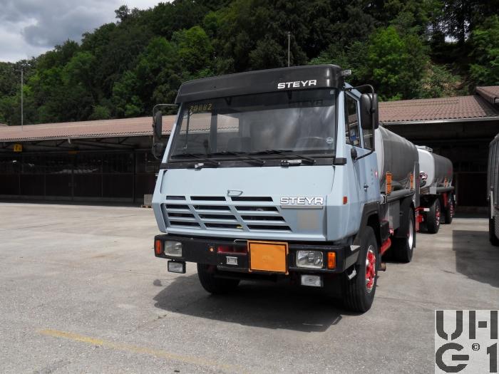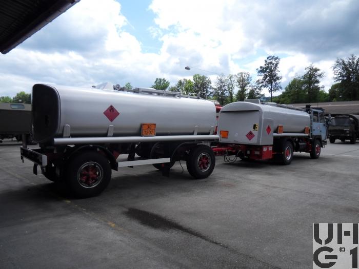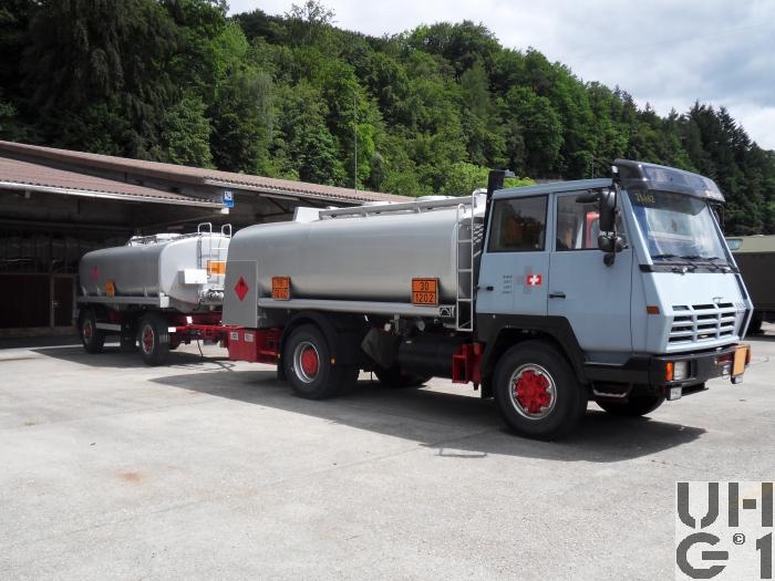| Bemerkungen | Lieferanten Fahrgestell Steyr Nutzfahrzeuge, A-4400 Steyr Aufbau Wartmann AG, CH-4538 Oberbipp Aufbau Tankaufbau für Treibstoffe Anhängerkupplung Hersteller Rockinger Typ 263 G 135 Anhänger Zisternenanhänger 93 Hersteller Chassis Lanz+Marti Sursee Aufbau KASAG Flückiger AG Langnau Typ TSG 12 / 1994 Länge 7'350 mm Breite 2'300 mm Höhe 2'830 mm Leergewicht 2'900 kg Nutzlast 9'100 kg Gesamtgewicht 12'000 kg Tankinhalt 12'500 Liter |