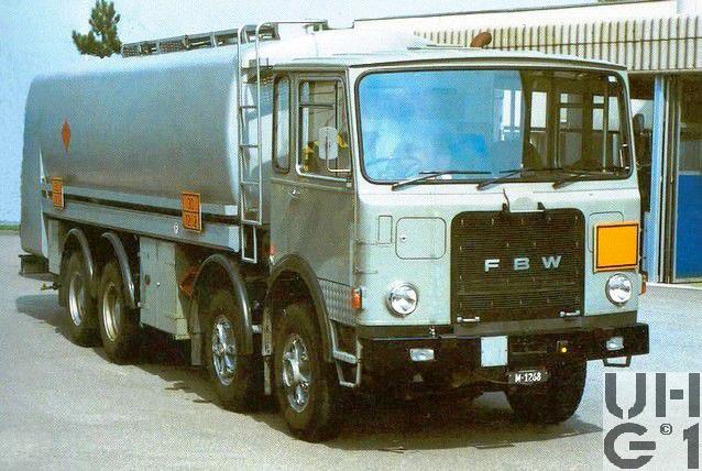 | Bemerkungen | Kabine: Frech Hoch Sissach Aufbau: Wartmann Aufbau: 2 Kammern mit je 10'000 Liter Inhalt Chassis Nummern 1976: 6617 1978: 6732 - 6736 M+ Nummern M+1269 bis M+1273 A Nummern A 40550 bis A 40554 Datenquelle Jürg Biegger FBW Fahrzeuglexikon 4 1968 - 1985 http://www.hnf.ch |