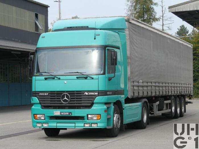 | Achsen | Vorne Starre Faustachse Zweiblatt Parabelfeder Querstabilisator Hydraulische Teleskopstossdämpfer Bereifung 315/70 R 22,5 Einfachbereifung Hinten Starrachse Einfach übersetzte Hypoidachse Mercedes Benz, Typ HL8 Übersetzung 4,14:1 Druckluft betätigte Differentialsperre Vierbalg Luftfederung Querstabilisator Hydraulische Teleskopstossdämpfer Bereifung 315/70 R 22,5 Doppelbereifung |
