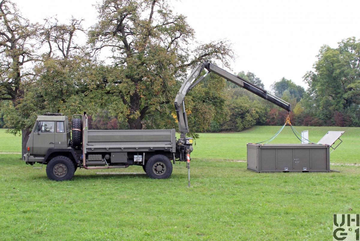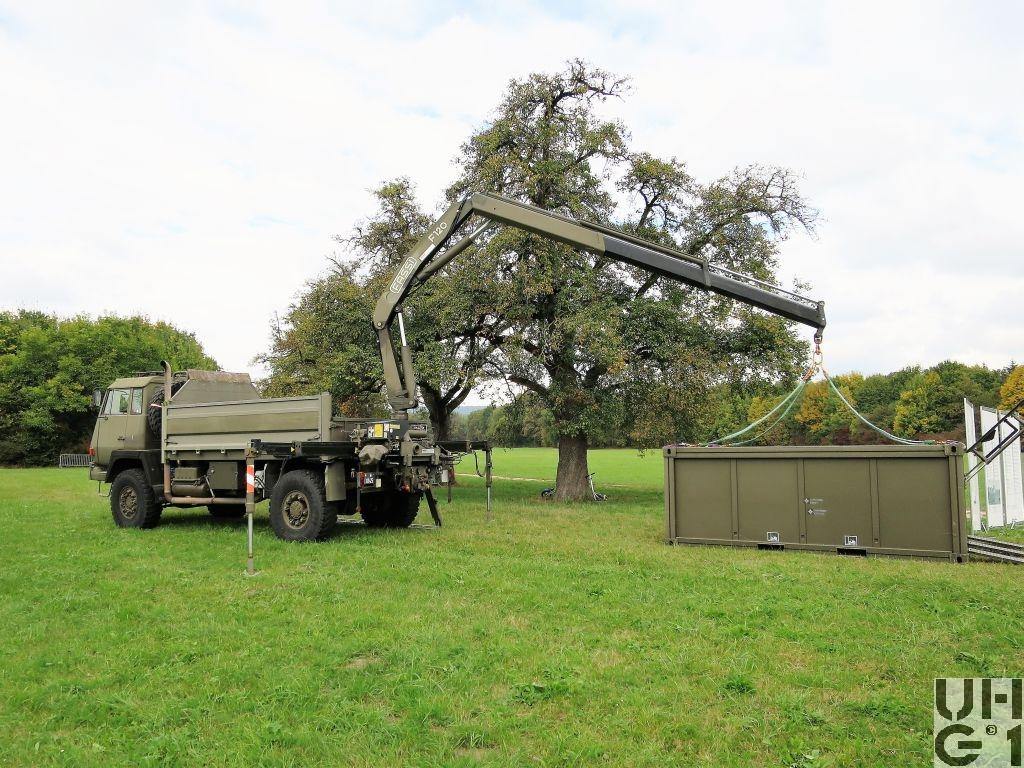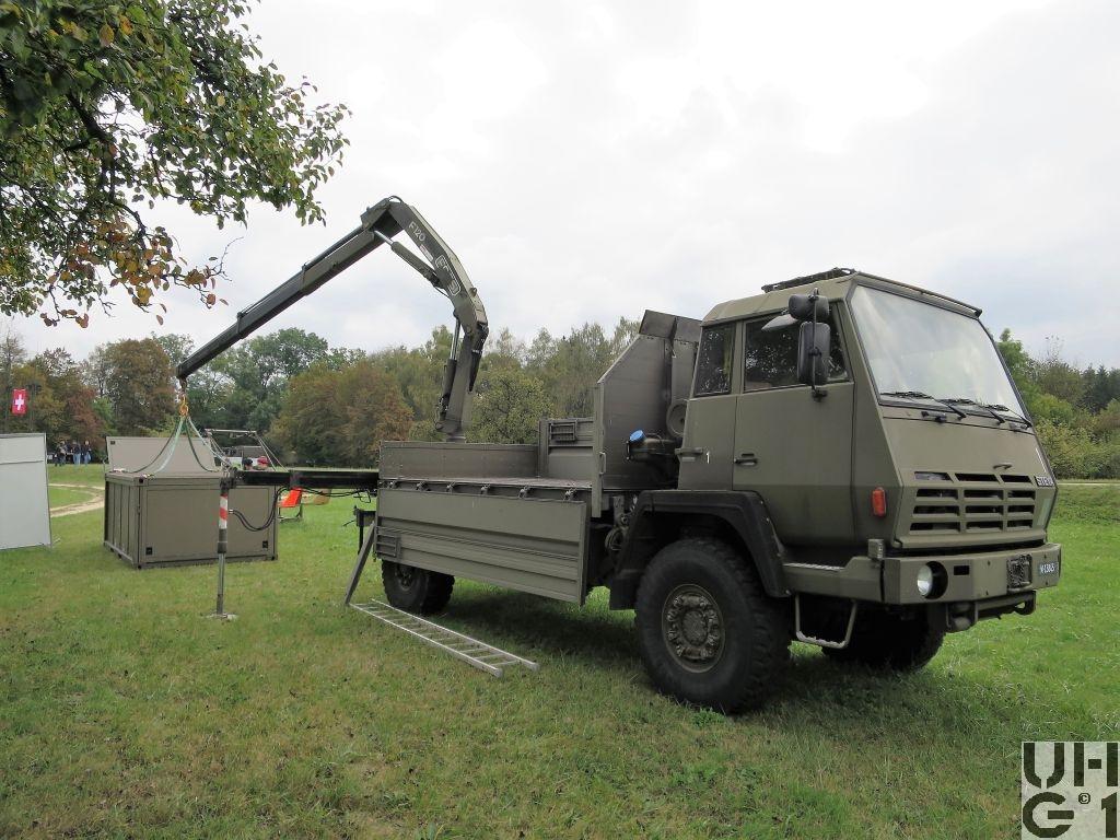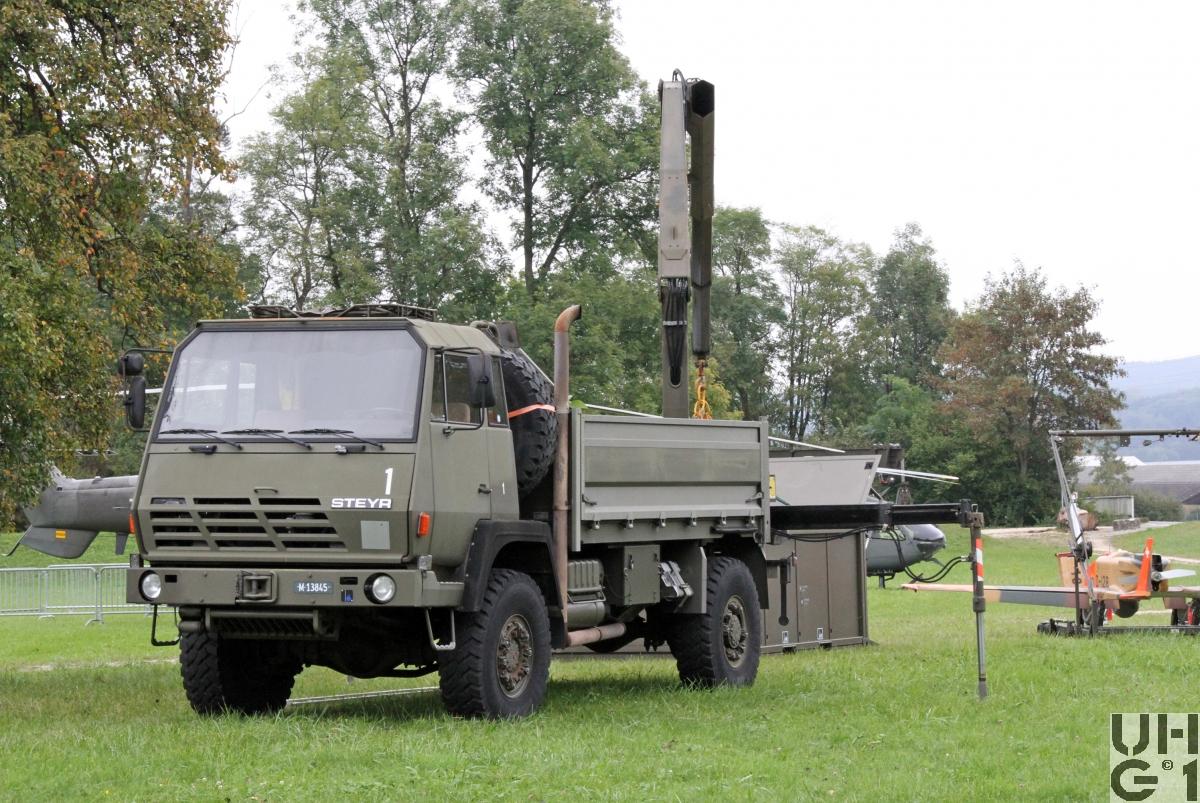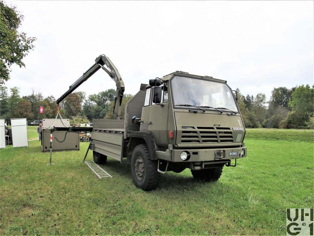 | Bemerkungen | Lieferanten Fahrgestell Steyr Nutzfahrzeuge AG, A-4400 Steyr Aufbau Carrosseriefirma Hess AG, CH-4512 Bellach Seilspill Fa. Rotzler, D-79577 Steinen Kranaufbau Armin Notter AG, CH-5623 Boswil Aufbau Brücke Seilwinde Ladekran Anhängerkupplung Ringfeder Typ 61 Ladekran Hersteller Fassi Typ F 120.22 11,3 mt Hubmoment 8'300 mm Ausladung 3'700 mm Hydraulischer Auszug 1'355 kg Tragkraft bei 8m Ausladung 35 l/min Pumpenleistung 390° Drehwinkel 19,25 kNm Schwenkmoment 265 bar Betriebsdruck 1'780 kg Gewicht M+Nummern M+13845, Liquidiert August 2020 M+13846, Liquidiert September 2020 |