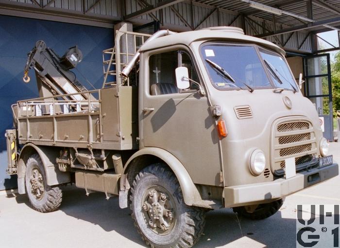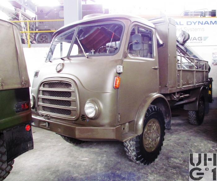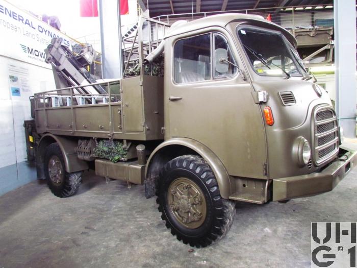 | Achsen | Vorne Starrachse Antriebsachse mit Hypoid Kegelradantrieb und einfacher Rücksetzung Übersetzung 6,17:1 Radantrieb über homokinetische Doppelkreuzgelenke Halbelliptische Längsblattfedern Hydraulische Teleskopstossdämpfer Felgen 7.50 - 20 GF Trilex Stahlfelgen Bereifung Firestone Super All Traction 10.00 - 20, 142/139 J, 14 Ply Einfachbereifung Hinten Starrachse Antriebsachse mit Hypoid Kegelradantrieb und einfacher Rücksetzung Übersetzung 6,14:1 Differentialsperre Druckluft betätigt Radantrieb über Achswellen Halbelliptische Längsblattfedern Felgen 7.50 - 20 GF Trilex Stahlfelgen Bereifung Firestone Super All Traction 10.00 - 20, 142/139 J, 14 Ply Einfachbereifung |