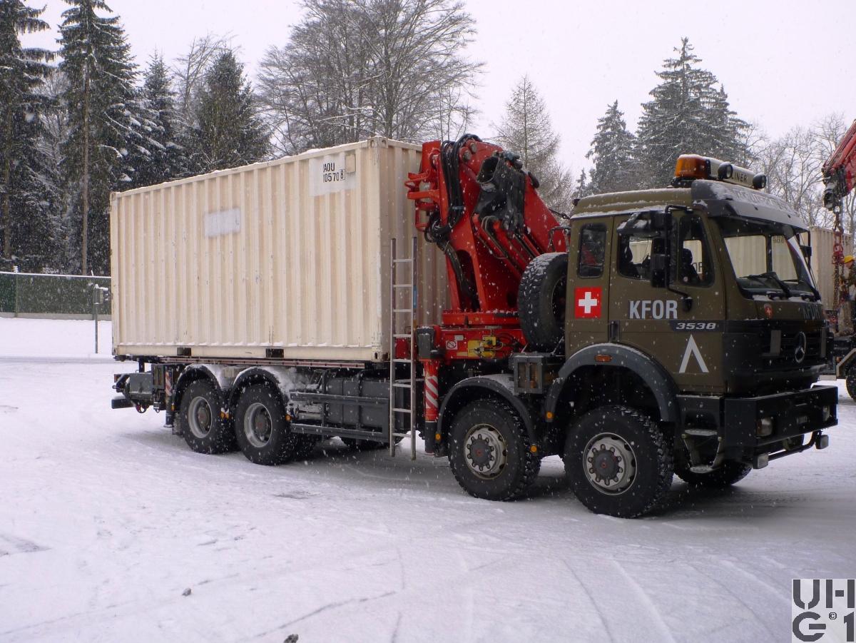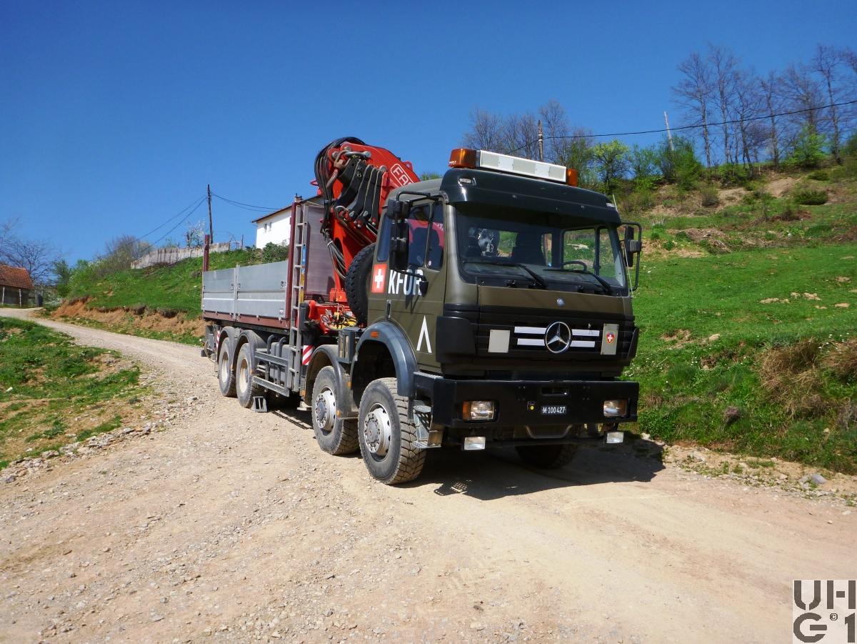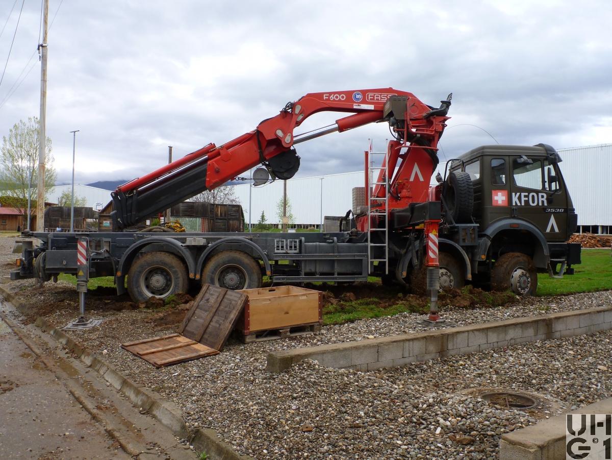 | Bemerkungen | Lieferanten Fahrgestell Mercedes-Benz (Schweiz) AG, CH-8952 Schlieren Kranaufbau Armin Notter AG, CH-5623 Boswil Seilspill Fa. Rotzler, D-79577 Steinen Aufbau Containerrahmen Seilwinde Ladekran Ladekran Hersteller Fassi Typ F600.24 53,8 mt Hubmoment 11'750 mm Ausladung 7'200 mm Hydraulischer Auszug 70 Liter / Minute Pumpenleistung 180° Schwenkbereich 48 kNm Schwenkmoment 305 bar Betriebsdruck 6'000 kg Gewicht |