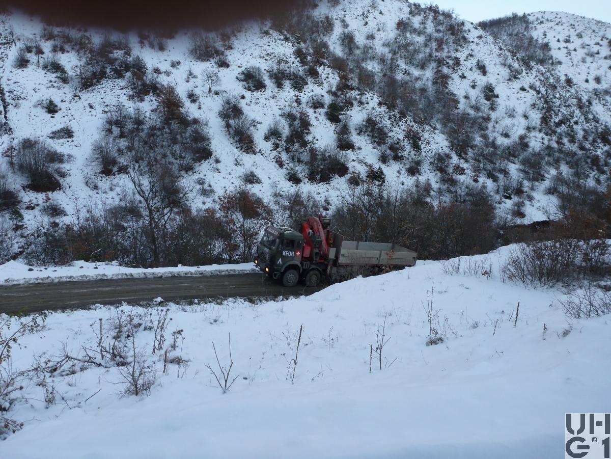 | Achsen | Vorne Starrachsen Antriebsachsen doppelt übersetzt Aussenplaneten Übersetzung 4,57:1 Differentialsperren Druckluft betätigt Parabelfederung Hydraulische Teleskopstossdämpfer Drehstabstabilisator Felgen 9.00 - 22,5 Stahlscheibenräder Bereifung Michelin XDY 315/80R22,5 156/150K Einfachbereifung Hinten Starrachsen Antriebsachsen doppelt übersetzt Aussenplaneten Übersetzung 4,57:1 Differentialsperren Druckluft betätigt Längssperren Druckluft betätigt Achsführung über 4 Längslenker unten und 2 Längslenker oben Pendelfederung Hydraulische Teleskopstossdämpfer Drehstabstabilisator Felgen 9.00 -22,5 Stahlscheibenräder Bereifung Michelin XDY 315/80R22,5 156/150L Doppelbereifung |