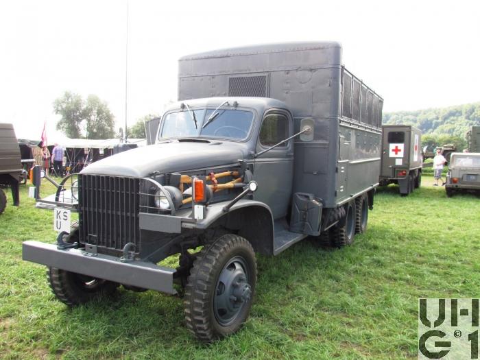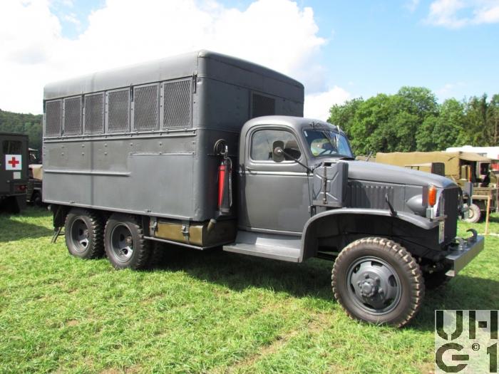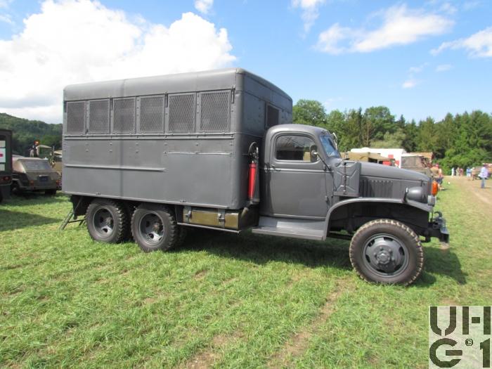| Getriebe | Hauptgetriebe Hersteller GMC/Chevrolet Corporation Mechanisches Schubrad Wechselgetriebe 5 Vorwärtsgänge 1 Rückwärtsgang Stockschaltung Übersetzung 1. Gang 6,06:1 2. Gang 3,50:1 3. Gang 1,80:1 4. Gang 1,00:1 5. Gang 0,79:1 R. Gang 6,00:1 Verteilergetriebe Hersteller GMC/Chevrolet Corporation Mechanisches Reduktions- und Verteilergetriebe mit 2 Schaltstufen für Strassen- und Geländegang Vorderradantrieb ausschaltbar Übersetzung 1,16:1 Strassengang 2,63:1 Geländegang Bedienung der Schaltung 1 Schalthebel für Hauptgetriebe 1 Schalthebel für Strassen- und Geländegang 1 Schalthebel für Vorderradantrieb |