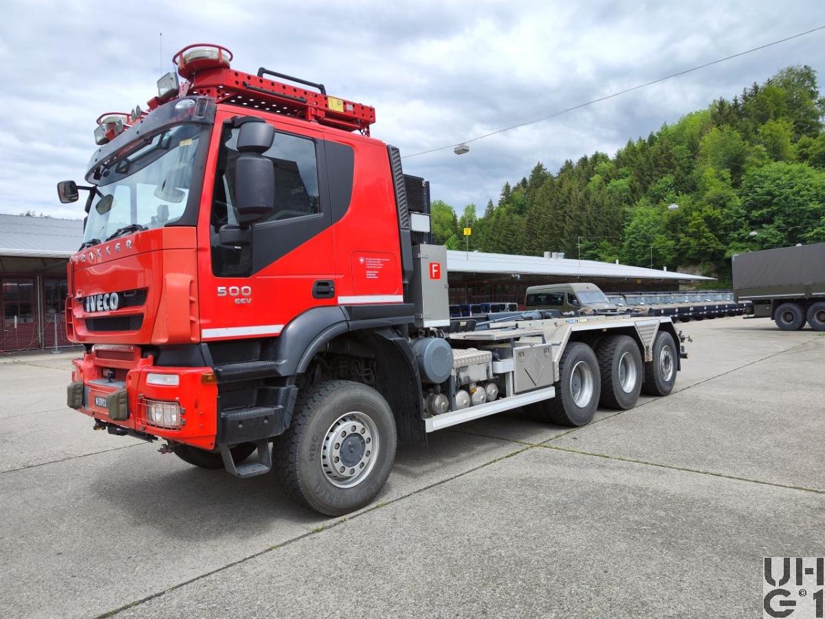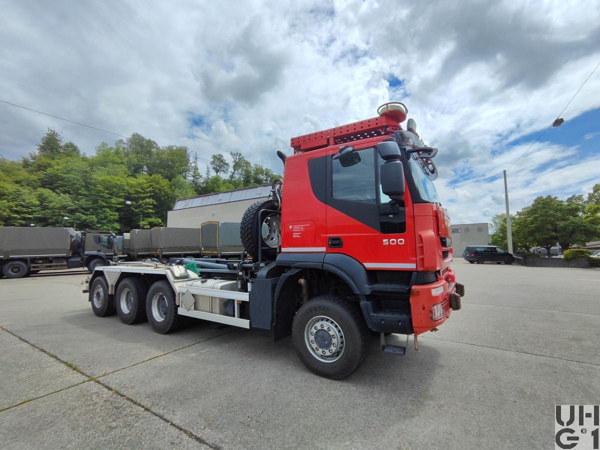 | Bemerkungen | Lieferanten Fahrgestell Iveco Magirus AG, D-89079 Ulm Aufbau Notterkran Boswil Aufbausystem WLS Abrollkippaufbau Multilift XR21Z.61 Notterkran 1140 kg Rockinger Kupplung Ro 50E G 6M Zusatzhydraulik für Hydrosub und Ladekran Einsatz Ei Kdo Kata Hi Ber Vb Schadenwehr Gotthard |