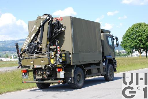 | Bemerkungen | Lieferanten Fahrgestell Iveco Magirus AG, D-89079 Ulm Aufbau Lanz Marti Sursee Aufbausystem Brücke mit Verdeck Ladekran Seilwinde Ladekran Hersteller: Fassi Bergamo Italien Typ: F135A.2.23 Ausladung auf 2'500 mm: 4'450 kg Ausladung auf 4'500 mm: 2'900 kg Ausladung auf 6'350 mm: 1'960 kg Ausladung auf 8'300 mm: 1'440 kg Ausladung auf 10'350 mm: 1'140 kg Kranbreite: 2'455 mm Kranhöhe: 2'365 mm Einbaubreite: 945 mm Schwenkbereich: 416° Schwenkmoment: 21,5 kNm Arbeitsdruck: 27,5 MPa Oelfördermenge: 40 l/min Oeltankgrösse: 90 Liter |