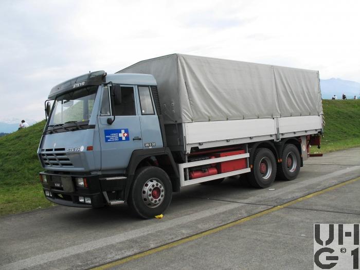 | Bemerkungen | Lieferanten Fahrgestell Steyr Nutzfahrzeuge, A-4400 Steyr Aufbau Carrosserie Krapf AG, CH-8580 Amriswil Hebebühne Trösch AG, CH-8600 Dübendorf Aufbau Brücke Verdeck Hebebühne Anhängerkupplung Hersteller Rockinger Typ 263 G 140 S Einsatz Sommer: Betriebslastwagen BABLW Winter: Trägerfahrzeug für Multienteiser Sämtliche Fahrzeuge sind mit SDR Ausrüstungsmaterial versehen Ein Teil der Fahrzeuge ist mit einer demontierbaren Hebebühne ausgestattet |