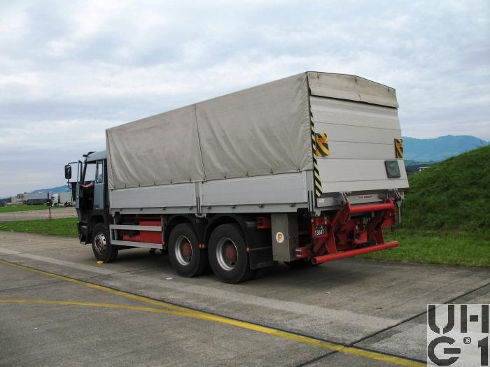 | Achsen | Vorne Faustachse Längsblattfeder Hydraulische Teleskop Stossdämpfer Querstabilisator Felgen 9.00 - 22,5 Stahlscheibenräder Bereifung Michelin XDY 12 R 22,5 152/148 L Einfachbereifung Hinten Starrachsen Antriebsachsen doppelt übersetzt mit Planetengetriebe Übersezung 4,8:1 Sperrdifferentiale Druckluft betätigt Radantrieb über Differentialwellen Längsblattfedern pendelt gelagert Querstabilisatoren Felgen 9.00 - 22,5 Stahlscheibenräder Bereifung Michelin XDY 12 R 22,5 152/149 L Doppelbereifung |