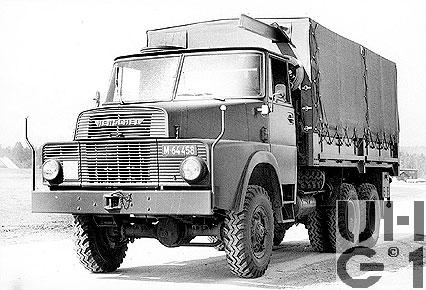 | Getriebe | Hauptgetriebe Hersteller ZF Typ AK 6-70-II Mechanisches Allklauengetriebe Schnellgangausführung Unsynchronisiert 6 Vorwärtsgänge 1 Rückwärtsgang Stockschaltung Geländegang Übersetzungen 1. Gang 6,63:1 2. Gang 3,88:1 3. Gang 2,43:1 4. Gang 1,55:1 5. Gang 1,00:1 6. Gang 0,71:1 R. Gang 5,66:1 Verteilergetriebe Hersteller Henschel Typ ZVA 340 Dreiwellengetriebe Mechanisches Reduktions- und Verteilergetriebe mit 2 Schaltstufen Mit Ausgleich zwischen Vorder- und Hinterachsen Elektropneumatisch geschaltet Zugknopf Rot Übersetzungen 1,00:1 Strassengang 1,32:1 Geländegang Differentialsperre In beiden Hinterachsen Elektropneumatisch geschaltet Zugknopf Gelb Bedienung der Schaltung Schalthebel Schwarz Hauptgetriebe Schalthebel Blau Seilwinde "auf-ab" Schalthebel Blau Seilwinde "ein-aus" Schalter Grün Längstriebsperren Schalter Gelb Differentialsperren Schalter Rot Verteilergetriebe |