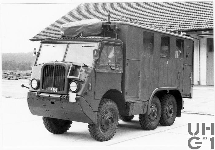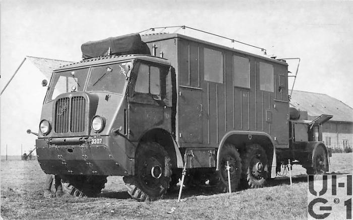 | Getriebe | Hauptgetriebe Hersteller Saurer Typ 4 C Langbau Mechanisches Zahnrad Wechselgetriebe mit öldicht abgetrenntem Gehäuse für Vorgelege Unsynchronisiert 5 Vorwärtsgänge 1 Rückwärtsgang Stockschaltung Übersetzung 1. Gang 5,38:1 2. Gang 2,84:1 3. Gang 1,71:1 4. Gang 1,00:1 5. Gang 0,735:1 R. Gang 5,18:1 Verteilergetriebe Mechanisches Reduktions- und Verteilergetriebe mit 3 Schaltstufen für Strassen- und Geländegang und Seilwinde Vorderradantrieb wird mit Geländegang automatisch eingeschaltet Nebenantrieb für Seilwinde Untersetzung 0,94:1 Strassengang 1,85:1 Geländegang Bedienung der Schaltung 1 Schalthebel für Hauptgetriebe 1 Schalthebel für Geländegang |