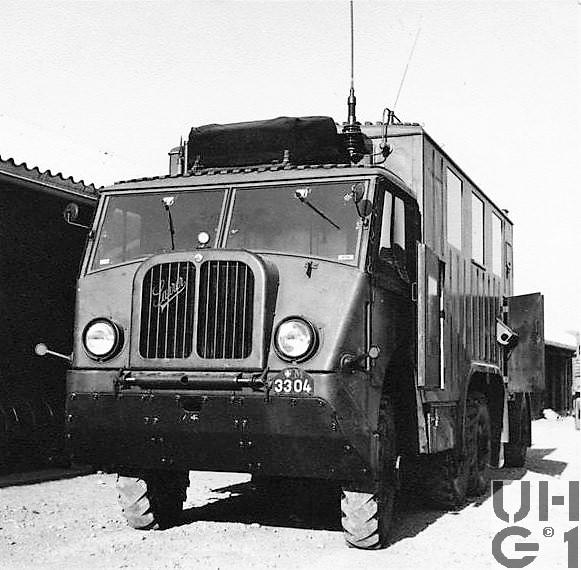 | Achsen | Vorne und hinten Pendelhalbachsen mit Drehpunkt auf Längstriebachse Progressiv gewundene Schraubenfedern, die über Schwinghebel und Zugstangen betätigt werden Die Achstrompeten sind in den Differentialgehäusen geführt Keine Stossdämpfer Alle Achsen mit selbstsperrenden Differentialen Vorne mit Freilauf Felgen 7.00 - 20 Trilex Stahlguss Felgen Bereifung Firestone Super All Traction 9.00 - 20, 12 Ply Alle Räder Einfachbereifung Funktion Die Halbachsen sind paarweise untereinander ausgeglichen durch Zugstangen und Kniehebel Das Fahrzeug wird von den hinteren 4 Pendelhalbachsen in der Mittellage gehalten, indem die zwei linken und die zwei rechten je durch eine Stange verbunden sind Die beiden vorderen Lenkhalbachsen sind wiederum miteinander über eine Ausgleichswaage verbunden, so dass sie das Fahrzeug vorne nur unterstützen und den Rahmen nicht verdrehen können |