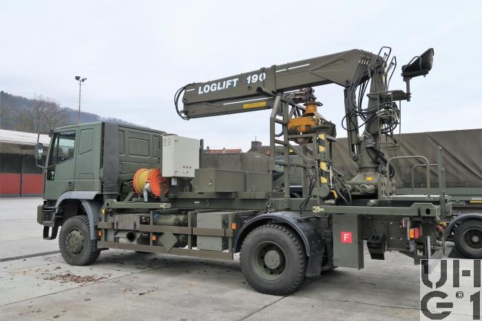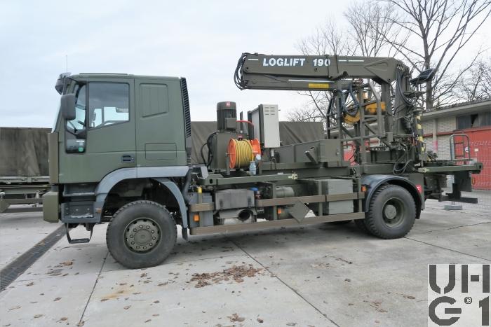 | Bemerkungen | Aufbau Holzkran Longlift F 190 S mit elektrischer Antriebseinheit Zweck Ausbildungsmodell für die Grundausbildung am Steyr Langmaterialtransportwagen Lieferant Armin Notter AG, CH-5623 Boswil Umbau Der Aufbau war vorher auf einem Saurer 2 DM montiert Der Umbau erfolgte 2007 |