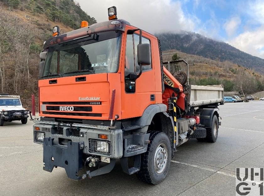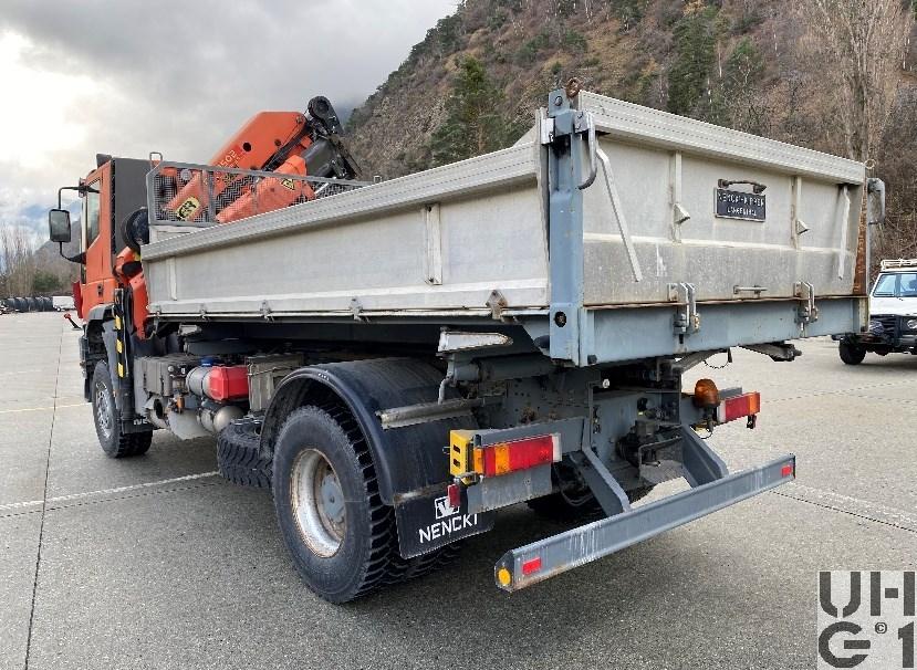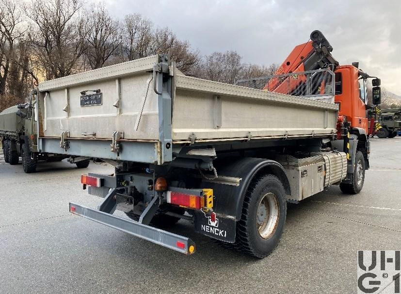 | Bemerkungen | Lieferanten Fahrgestell Iveco Magirus AG, D-89079 Ulm Aufbau Nencki AG, CH-4900 Langenthal Aufbau 3-Seitenkipper Ladekran Palfinger PK 12502b Schneepflugvorbereitung Ladekran Hersteller Palfinger Typ 12502b 19,0 kNm Max. Hubmoment 60,8 kN Max. Hubkraft 10,2 m Max. hydraulische Reichweite 50 - 70 Liter Pumpenleistung 420° Schwenkbereich 13,7 kNm Schwenkmoment 330 bar Betriebsdruck 1'660 kg Gewicht M+Nummern M+28336 bis M+28338 |
