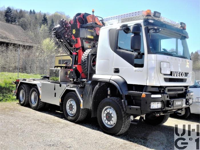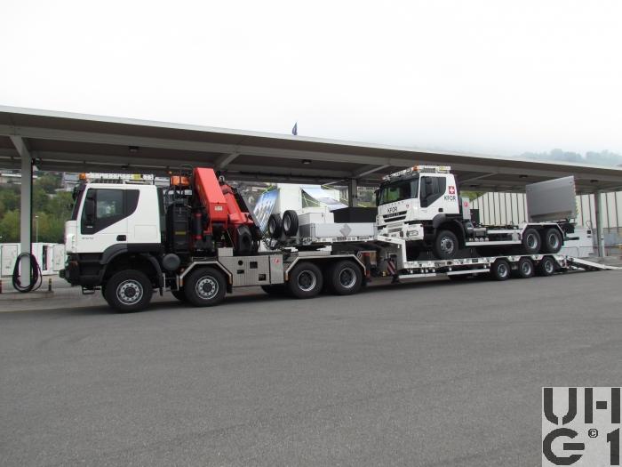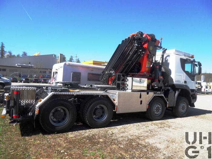 | Bemerkungen | Lieferanten Fahrgestell Iveco Magirus AG, D-89079 Ulm Aufbau Carrosserie Langenthal AG, CH-4901 Langenthal Ladekran Walser AG, CH-8317 Tagelswangen Aufbau Ladekran Palfinger PK 85002G und Sattelkupplung Ballastbrücke als Zubehör Ladekran Hersteller Palfinger Typ PK 85002G 80 mt Hubmoment 20,2 m Ausladung 100 l/min Pumpenleistung 450 Liter Oeltank 360° Schwenkbereich 76 kNm Schwenkmoment 365 bar Betriebsdruck 8'580 kg Gewicht 2'550 mm Breite 8'600 mm Breite Stützen max. ausgefahren 2'450 mm Höhe zusammengefaltet M+Nummern M+100648 M+100649 |