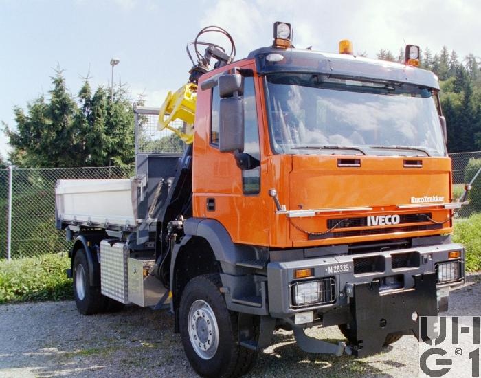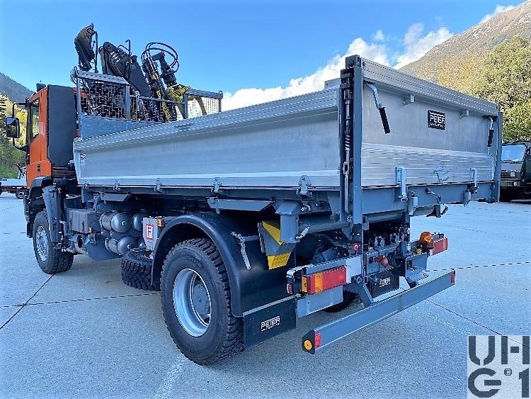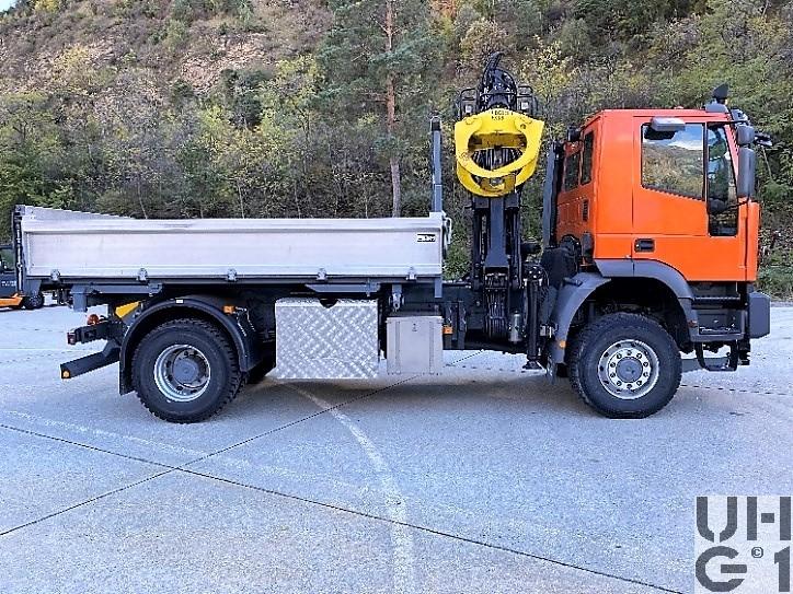| Bemerkungen | Lieferanten Fahrgestell Iveco Magirus AG, D-89079 Ulm Aufbau Peter Fahrzeugbau AG, CH-5200 Winterthur Ladekran Armin Notter AG, CH-5623 Boswil Aufbau 3-Seiten Kippbrücke "Peter" Ladekran Loglift F75Z72A + Greifer Schneepflugplatte mit Steuerung Ladekran Hersteller Loglift Typ F75Z72A 7,5 mt Hubmoment 7,2 m Ausladung 7,2 m Hydraulischer Auszug 65 Liter/min Pumpenleistung 360° Schwenkbereich 48 kNm Schwenkmoment 305 bar Betriebsdruck 1'860 kg Gewicht M+Nummer M+28335 |