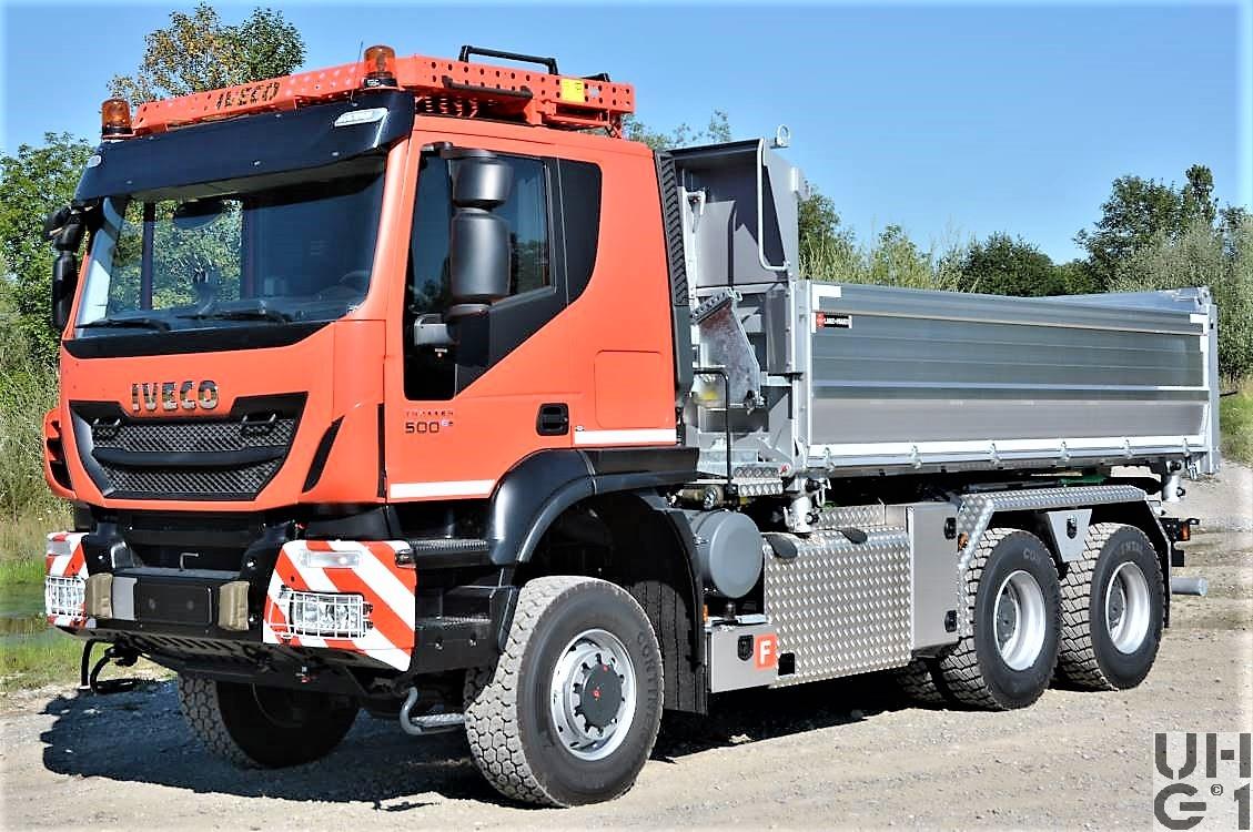 | Achsen | Vorne Starrachse Doppelt übersetzte Antriebsachse mit Radaussenantrieb Übersetzung 4,23:1 Zwei doppelt wirkende hydraulische Teleskopstossdämpfer Parabelfedern Lenkbare Hohlachsschenkel Drehstabstabilisator Differentialsperre automatisch betätigt Felgen 9.00 - 22,5 Stahlscheibenrad Bereifung Continental HDC 385/65 R 22,5 162 K Einfachbereifung Reifendrucküberwachung Hinten Starrachsen Doppelt übersetzte Antriebsachsen mit Radaussenantrieb Übersetzung 4,23:1 Pneumatisch betätigtes Sperrdifferential Längssperren automatisch betätigt Achsführung über 4 Längslenker unten und 2 Längslenker oben Parabelfedern in Pendelfederlagerung Drehstabstabilisator an beiden Achsen Je zwei doppelt wirkende hydraulische Teleskopstossdämpfer pro Achse Felgen 9.00 - 22,5 Stahlscheibenrad Bereifung Continental HDC1 315/80 R 22,5 156/150 K Doppelbereifung Reifendrucküberwachung |