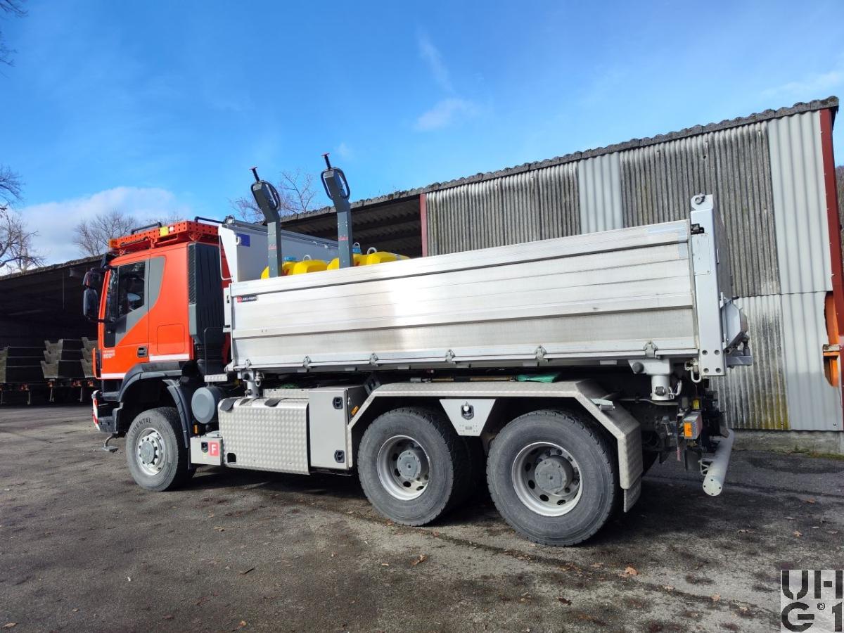 | Tankinhalt | 1 Tank Alu zu 400 Liter Diesel 1 Tank Kunststoff zu 25 Liter AdBlue links am Chassis 1 Tank Alu zu 80 Liter Hydraulikoel Hinter der Kabine |