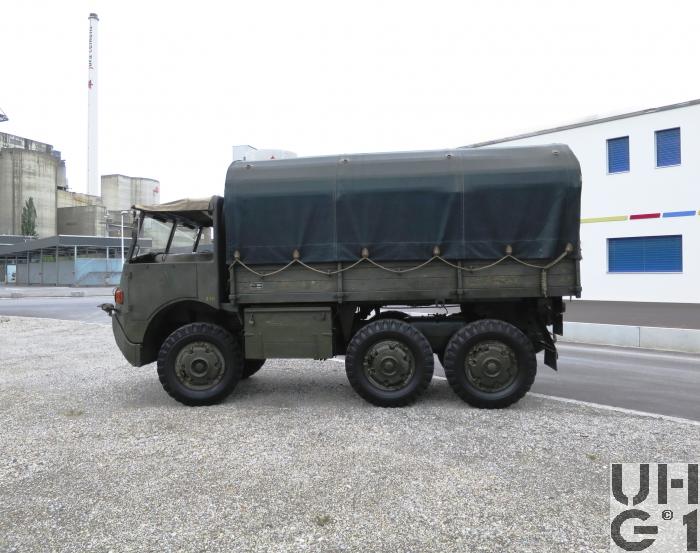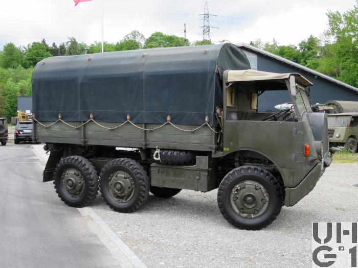 | Getriebe | Hauptgetriebe Hersteller Saurer Typ 4 C Langbau Mechanisches Zahnrad Wechselgetriebe mit öldicht abgetrenntem Gehäuse für Vorgelege Unsynchronisiert 5 Vorwärtsgänge 1 Rückwärtsgang Stockschaltung Übersetzung 1. Gang 5,38:1 2. Gang 2,84:1 3. Gang 1,71:1 4. Gang 1,00:1 5. Gang 0,735:1 R. Gang 5,18:1 Verteilergetriebe Mechanisches Reduktions- und Verteilergetriebe mit 3 Schaltstufen für Strassen- und Geländegang und Seilwinde Vorderradantrieb wird mit Geländegang automatisch eingeschaltet Nebenantrieb für Seilwinde Untersetzung 0,94:1 Strassengang 1,85:1 Geländegang Bedienung der Schaltung 1 Schalthebel für Hauptgetriebe 1 Schalthebel für Geländegang 1 Kleiner Hebel am Schalthebel Geländegang für die Seilwinde |