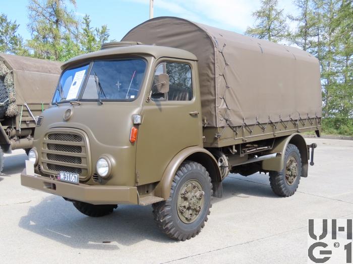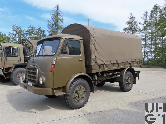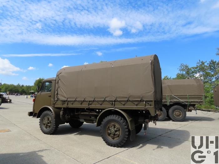 | Achsen | Vorne Starrachse Antriebsachse mit Hypoid Kegelradantrieb und einfacher Rücksetzung Übersetzung 6,17:1 Radantrieb über homokinetische Doppelkreuzgelenke Halbelliptische Längsblattfedern Hydraulische Teleskopstossdämpfer Felgen 7.50 - 20 GF Trilex Stahlfelgen Bereifung Firestone Super All Traction 10.00 - 20, 142/139 J, 14 Ply Einfachbereifung Hinten Starrachse Antriebsachse mit Hypoid Kegelradantrieb und einfacher Rücksetzung Übersetzung 6,14:1 Differentialsperre Druckluft betätigt Radantrieb über Achswellen Halbelliptische Längsblattfedern Felgen 7.50 - 20 Trilex Stahlfelgen Bereifung Firestone Super All Traction 10.00 - 20, 142/139 J, 14 Ply Einfachbereifung |