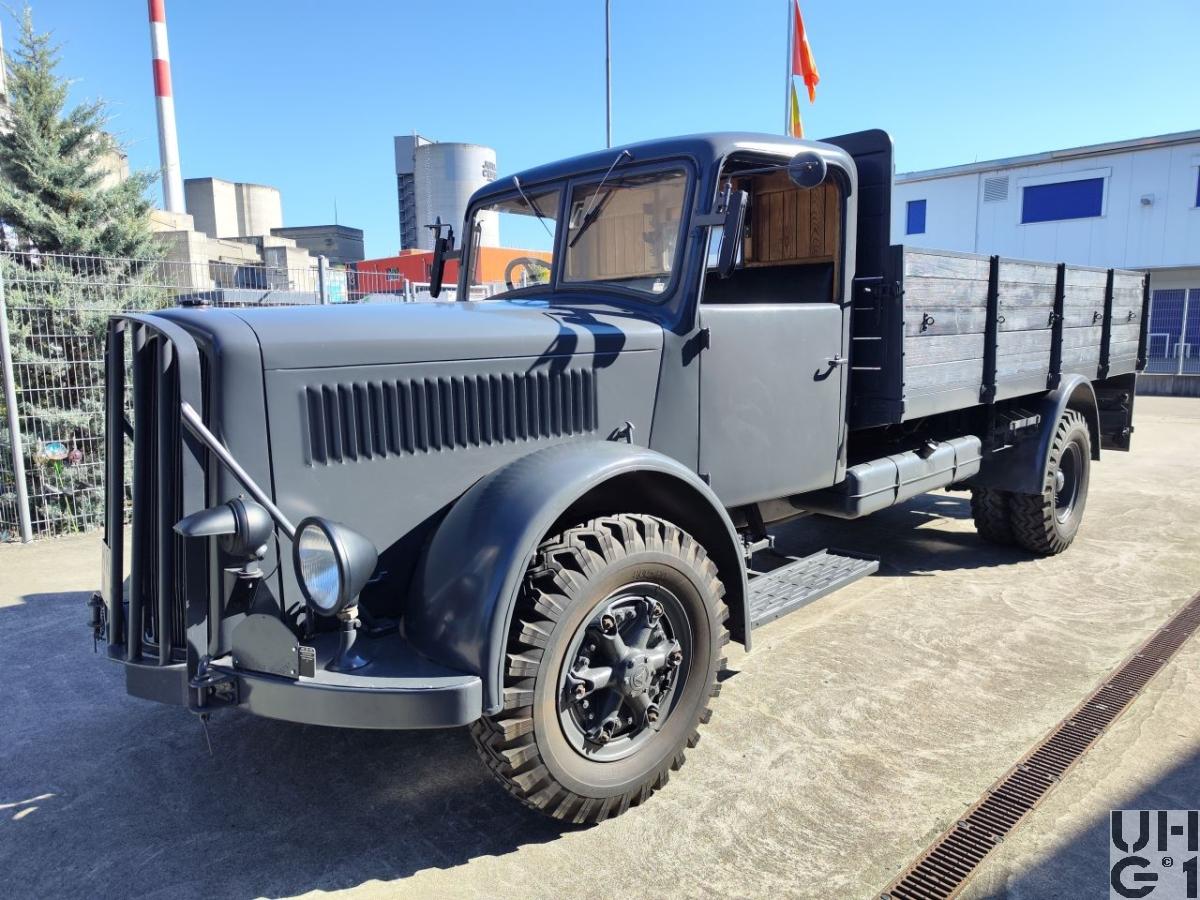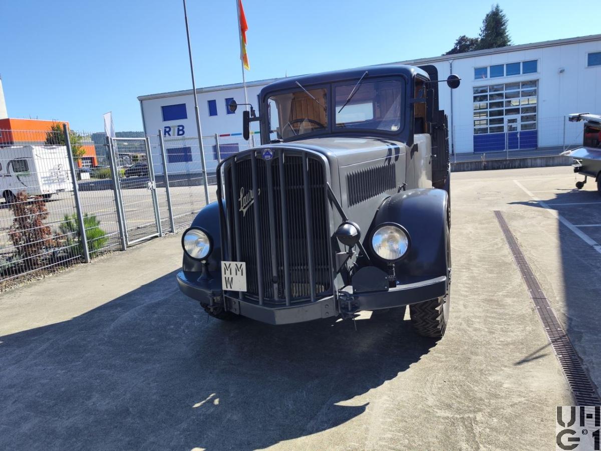 | Achsen | Vorne Starrachse (Faustachse) Halbelliptische Längsblattfedern Hebelstossdämpfer Felgen Trilex Stahlgussräder Bereifung 9.00 - 20, 12 Ply Einfachbereifung Hinten Starrachse Antriebsachse mit doppelter Rücksetzung Übersetzung 9,53:1 Halbelliptische Längsblattfedern Felgen Trilex Stahlgussräder Bereifung 9.00 - 20, 12 Ply Doppelbereifung |