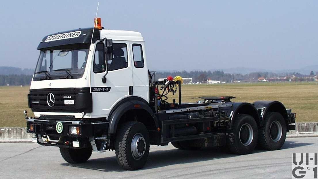 | Bemerkungen | Lieferanten Fahrgestell Mercedes Benz Schweiz AG, CH-8952 Schlieren Aufbauten Peter Fahrzeugbau AG, CH-5200 Winterthur Seilspill Fa. Rotzler, D-79577 Steinen Aufbau Wechselsystem Dautel Sattelkupplung Beschaffungen 4 Fahrzeuge Mercedes Benz 2644 6x6 7 Wechselhilfsrahmen Peter WHR CTR (MB) Containertransport 4 Wechselhilfsrahmen Peter WHR SS (MB) Sattelschlepper 4 Wechselhilfsrahmen Peter WHR Ki (MB) Kippmulde Wechselhilfsrahmen werden auch für Fahrzeuge Mercedes Benz 2638 6x6 gebraucht |