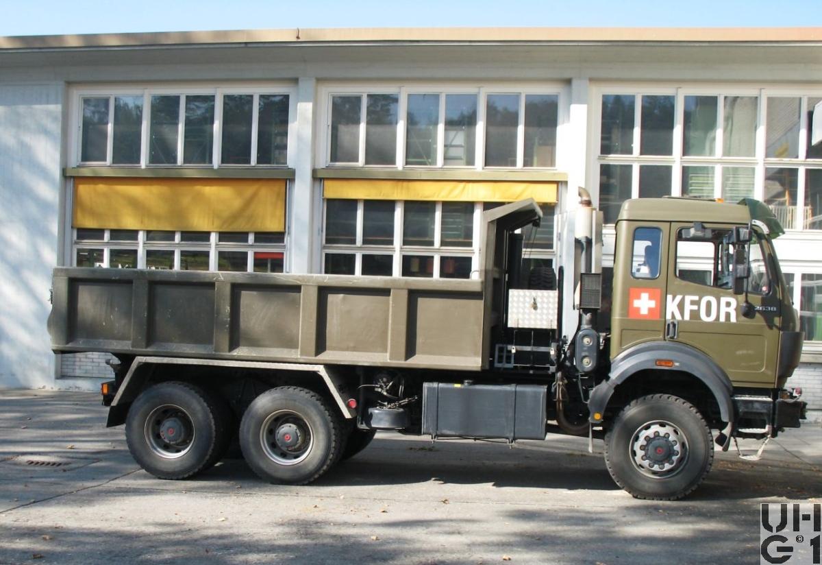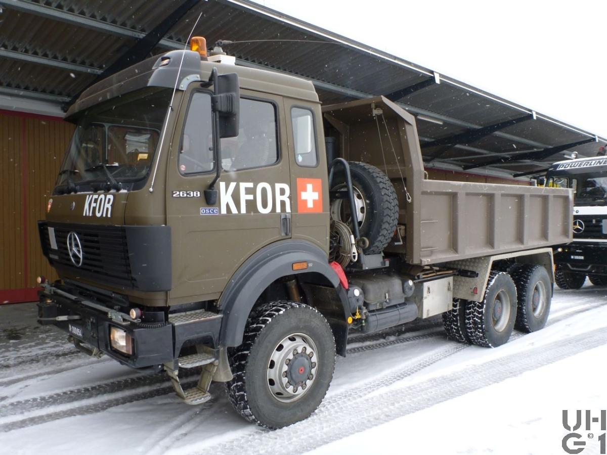 | Achsen | Vorne Starrachse Antriebsachse doppelt übersetzt Aussenplaneten Übersetzung 4,14:1 Differentialsperre Druckluft betätigt Parabelfedern Hydraulische Teleskopstossdämpfer Querstabilisator Felgen 9.00 - 22,5 Stahlscheibenräder Bereifung 12.00 R 22,5 Einfachbereifung Hinten Starrachsen Antriebsachsen doppelt übersetzt Aussenplaneten Übersetzung 4,14:1 Differentialsperren Druckluft betätigt Längssperren Druckluft betätigt Achsführung über 4 Längslenker unten und 2 Längslenker oben Längsblattfedern pendelt gelagert Hydraulische Teleskopstossdämpfer Querstabilisator Felgen 9.00 - 22,5 Stahlscheibenräder Bereifung 12.00 R 22,5 Doppelbereifung |