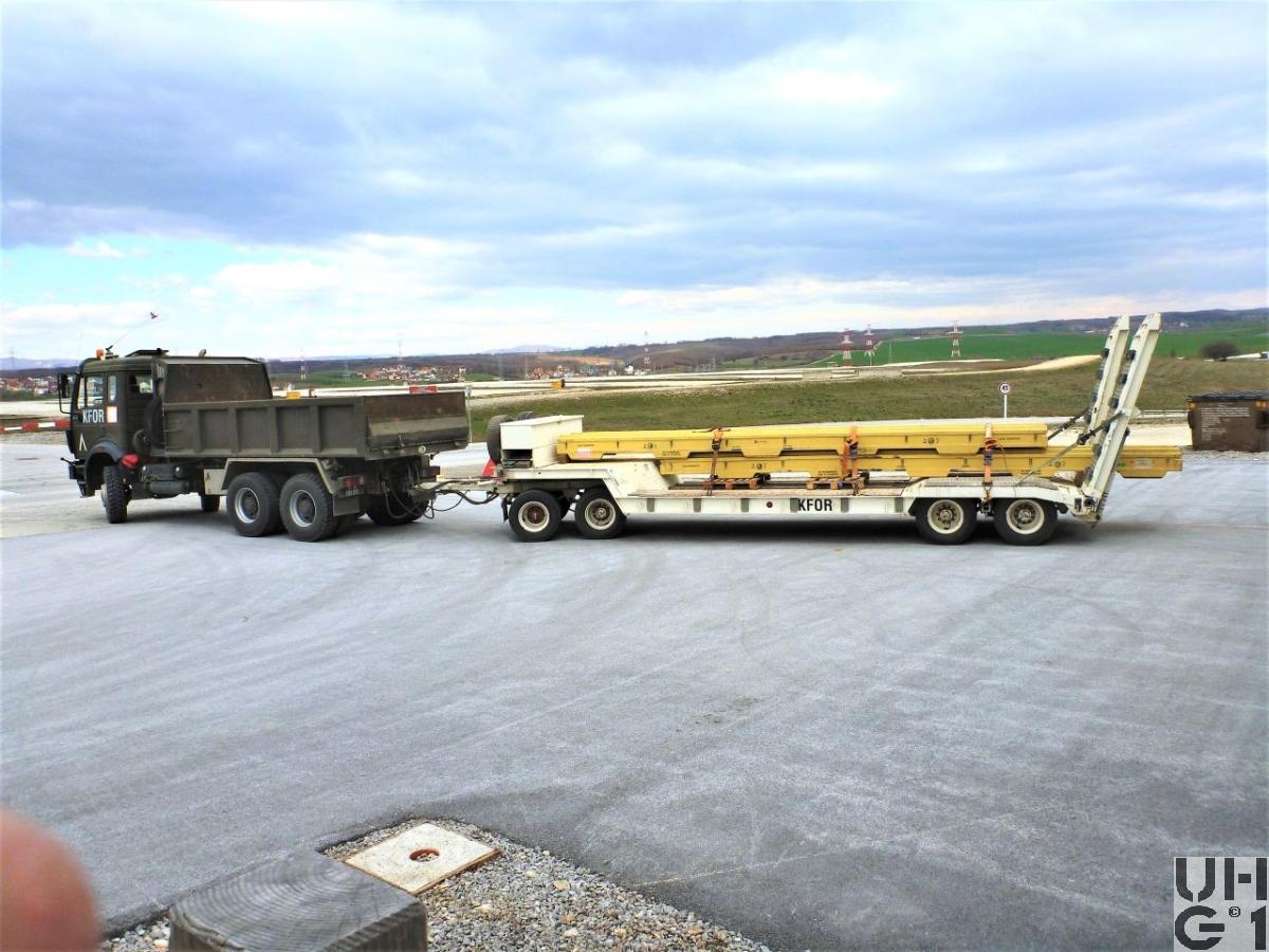 | Getriebe | Hauptgetriebe Hersteller Mercedes Benz Typ 210-16 Synchrongetriebe Doppel H-Schaltung 16 Vorwärtsgänge 1 Rückwärtsgang Übersetzungen 14,2:1 bis 0,83:1 Verteilergetriebe Hersteller Mercedes Benz Typ VG 2400-3W Übersetzung 1,030:1 Strassengang 1,448:1 Geländegang |