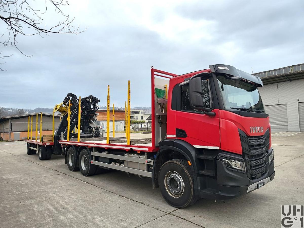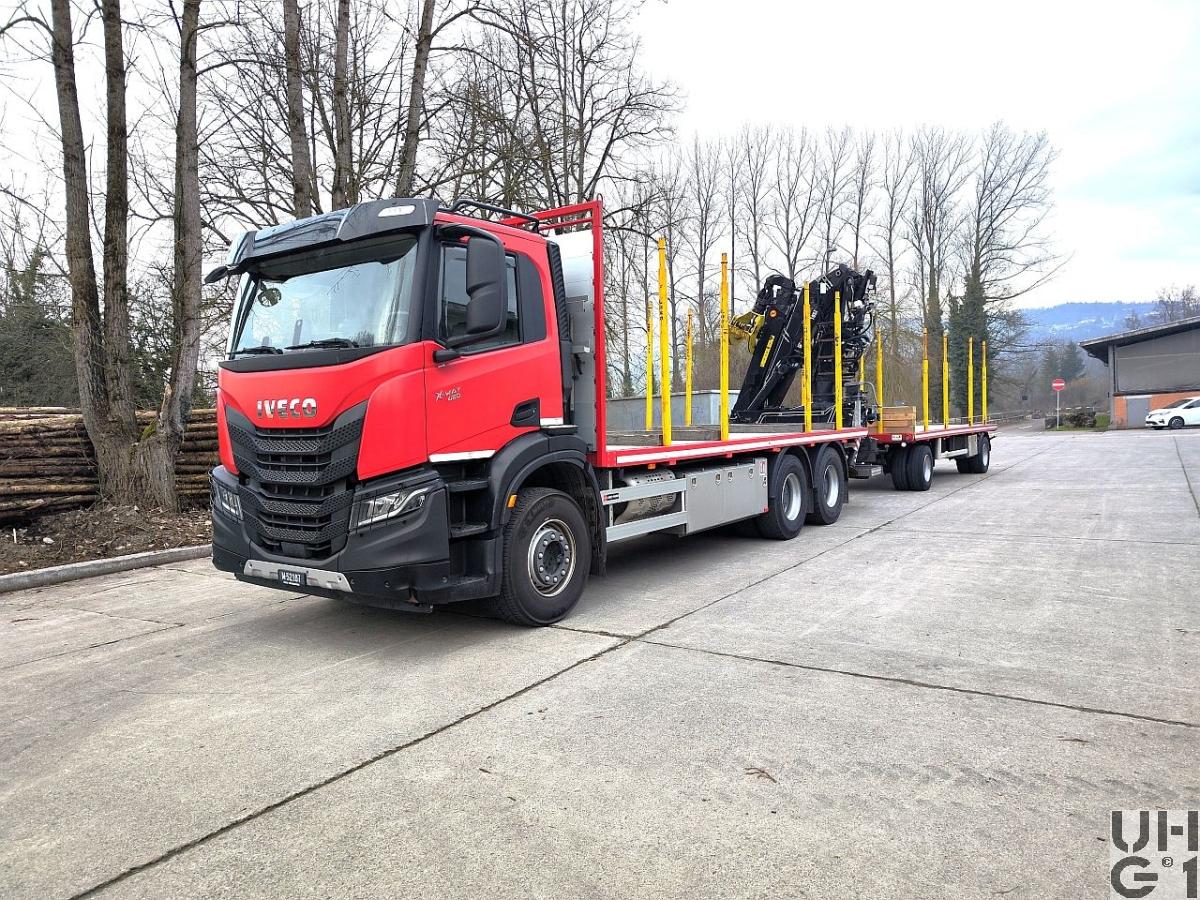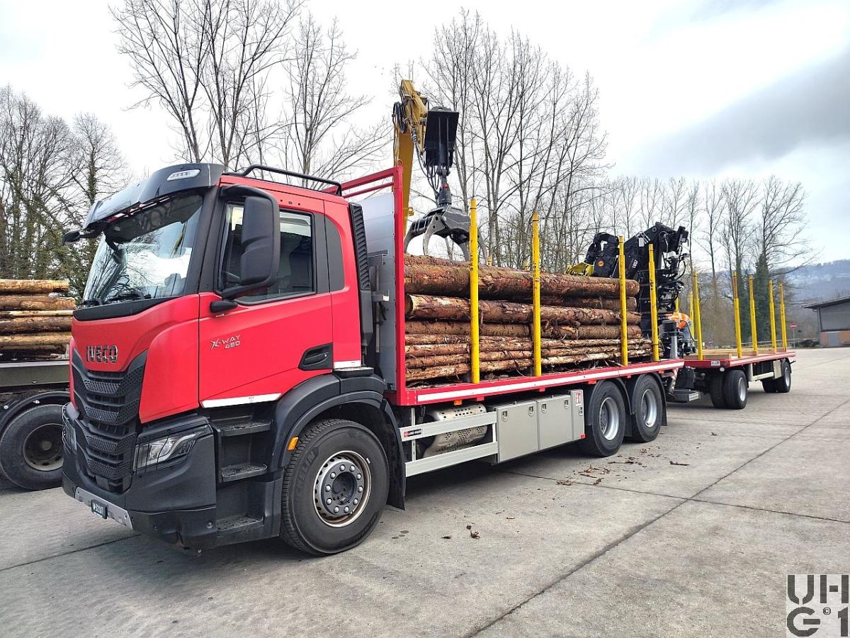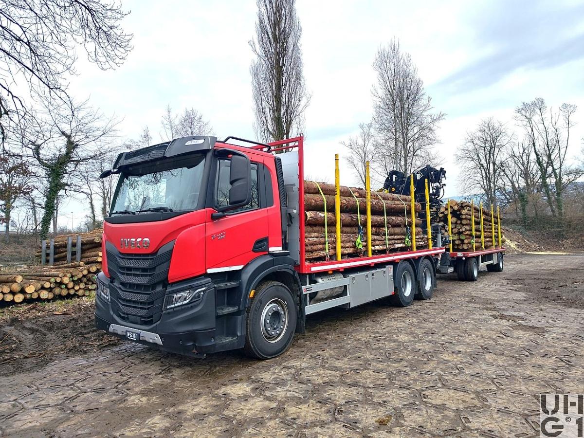 | Bemerkungen | M+Nummer M+52107 Zugfahrzeug M+230779 Anhänger Heckkran Hersteller Loglift Typ F165Z 93 Max. Hubkapazität 145 kNm Hydraulische Reichweite 9'300 mm Schwenkwinkel 412° Schwenkmoment 31 kNm Max. Arbeitsdruck 22 bar Gewicht 2'780 kg Gewicht 2'111 kg ohne Greifer und Stützbein Aufbauhöhe 2'546 mm Aufbaubreite 2'500 mm |