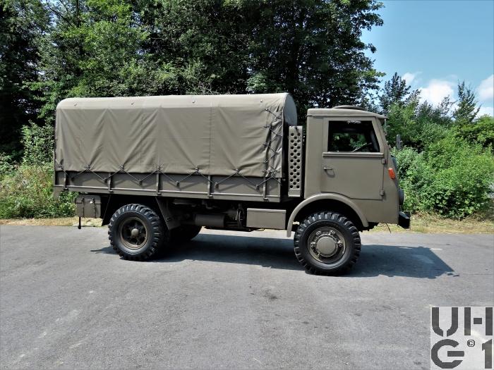 | Achsen | Vorne Starrachse Antriebsachse mit Kegelraddifferential und einfacher Rücksetzung Untersetzung 4,47:1 Radantrieb über homokinetische Antriebsgelenke und im Radkörper eingebautes Planetengetriebe Untersetzung 2,07:1 Halbelliptische Längsblattfedern Hydraulische Hebelstossdämpfer doppelwirkend, einstellbar Felgen 8.00 - 20 Trilex Stahlguss Felgen Bereifung Firestone Super All Traction 10.00 - 20, 14 Ply Einfachbereifung Hinten Starrachse Antriebsachse mit Kegelraddifferential und doppelter Rücksetzung Untersetzung 9,27:1 Radantrieb mit Differentialwelle Halbelliptische Längsblattfedern mit progressiever Wirkung Differentialsperre Druckluft betätigt Felgen 8.00 - 20 Trilex Stahlguss Felgen Bereifung Firestone Super All Traction 10.00 - 20, 14 Ply Doppelbereifung |