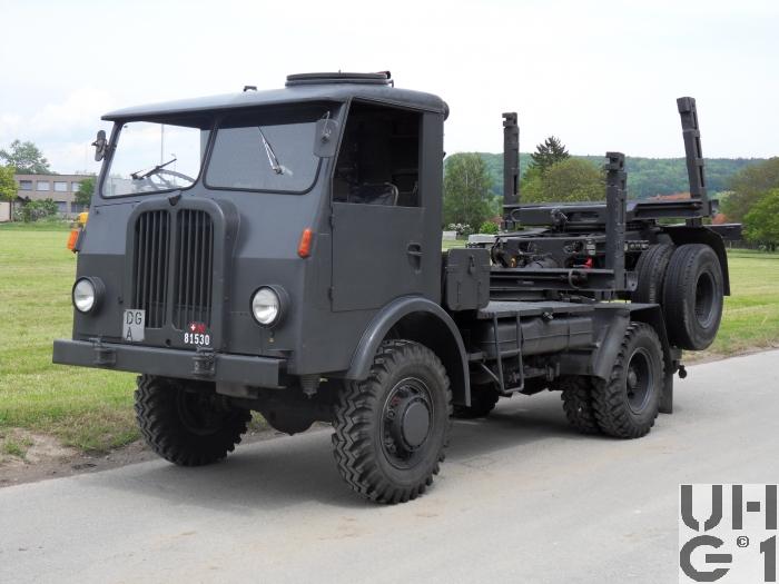 | Bemerkungen | Zuteilung Schw Sap Kp Anhänger Langmatanh 7,3 t Peter 2'700 kg Leergewicht 7'300 kg Nutzlast 10'000 kg Gesamtgewicht M+Nummern M+84000 bis M+84001 Neuwagen M+84002 bis M+84008 umgebaut M+82100 bis M+ 82108 später Am Fahrzeug sind zwei verschiedene Windensysteme zur Beladung angebracht, die Winde mit dem kurzen Seil ist für das Zugfahrzeug, die Winde mit dem langen Seil ist für den Anhänger. Das Fahrzeug ist auch mit einer Gegensprechanlage für Fahrer und Schwicker ausgerüstet. |