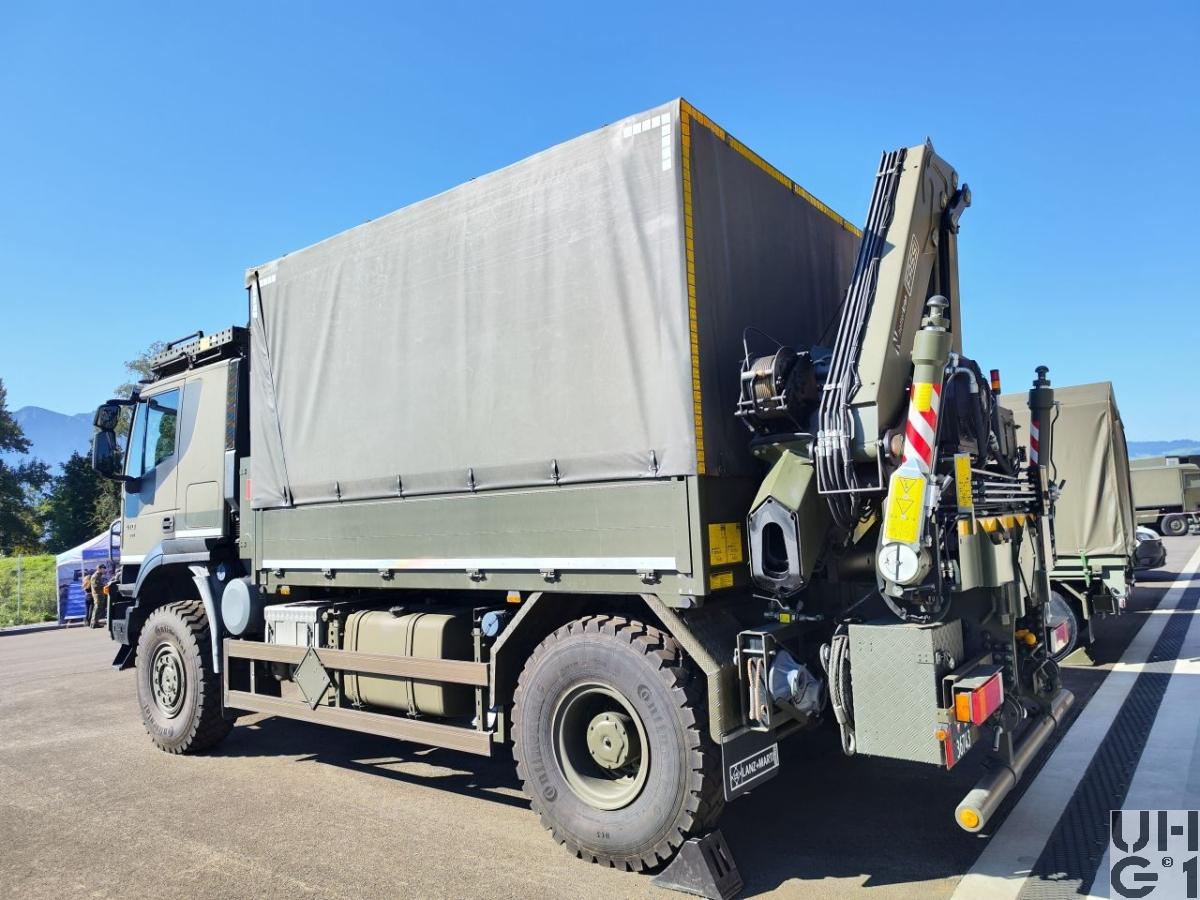 | Bemerkungen | Lieferanten Fahrgestell Iveco Magirus AG, D-89079 Ulm Aufbau Lanz Marti Sursee Aufbausystem Brücke mit Verdeck Ladekran Seilwinde Ladekran Hersteller: Fassi Bergamo Italien Typ: F135A.2.23 Ausladung auf 2'500 mm: 4'450 kg Ausladung auf 4'500 mm: 2'900 kg Ausladung auf 6'350 mm: 1'960 kg Ausladung auf 8'300 mm: 1'440 kg Ausladung auf 10'350 mm: 1'140 kg Kranbreite: 2'455 mm Kranhöhe: 2'365 mm Einbaubreite: 945 mm Schwenkbereich: 416° Schwenkmoment: 21,5 kNm Arbeitsdruck: 27,5 MPa Oelfördermenge: 40 l/min Oeltankgrösse: 90 Liter |