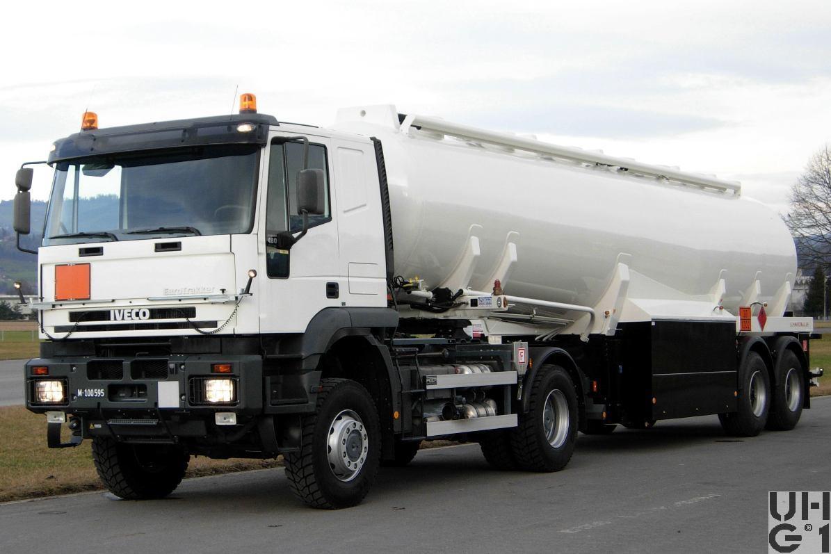 | Bemerkungen | Liefereanten Fahrgestell Iveco Magirus AG, D-89079 Ulm Aufbau Peter Fahrzeugbau AG, 8400 Winterthur Seilspill Rotzler GmbH + Co., D-79577 Steinen Aufbau 1. Sattelkupplung 2. Zulassung als schwerer Motorwagen (Anhängerbetrieb) Auflieger Bezeichnung Tank Sattelanh TRST 32'000 l 2-Achsig INT Hersteller Schwarzmüller Typ TS2/E Konstruktion Selbsttragender Tankaufbau Achsen Starrachsen BPW SHS-ECO Federung Luftfederung Räder Stahlscheibenräder Bereifung 425/65 R 22,5 165 K Bremsen Druckluft 2-Kreis nach EG-Norm, Scheibenbremsen (EBS) Aufbau Tankaufbau für Dieseltreibstoff, 7 Kammern |