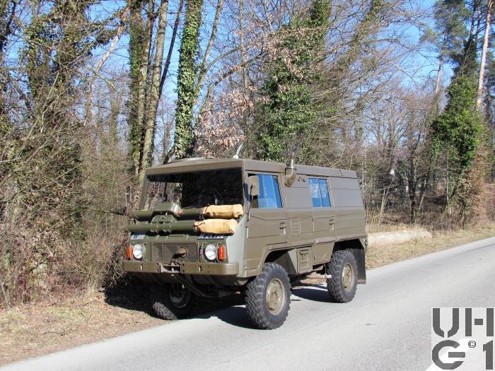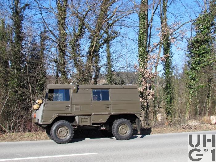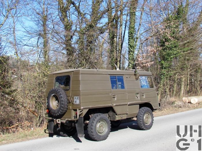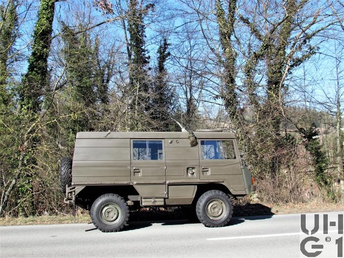 | Getriebe | Hauptgetriebe Hersteller ZF Typ S 5-18/3 Mechanisches Zahnrad Wechselgetriebe Sämtliche Vorwärtsgänge sperrsynchronisiert Rückwärtsgang mit Klauenkupplung 5 Vorwärtsgänge 1 Rückwärtsgang Stockschaltung Übersetzung 1. Gang 5,33:1 2. Gang 3,24:1 3. Gang 2,04:1 4. Gang 1,30:1 5. Gang 1,00:1 R. Gang 5,47:1 Verteilergetriebe Mechanisches Reduktions- und Verteilergetriebe am zentralen Tragrohr und am Hinterachsantrieb angeflanscht 2 sperrsynchronisierte Gänge Übersetzung 0,88:1 Strassengang 1,69:1 Geländegang Bedienung der Schaltung Schalthebel Weiss: Hauptgetriebe Schalthebel Schwarz: Gruppengetriebe Je 1 Hebel für: Vorderradantrieb Differentialsperre hinten Differentialhebel vorne |