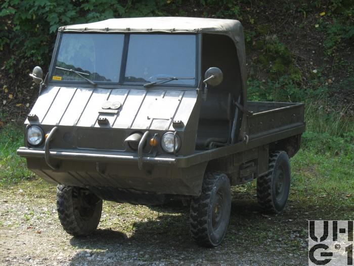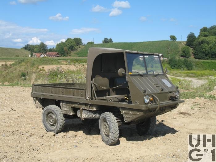 | Bemerkungen | Typenschild rechts beim Einstieg vor dem Beifahrersitz Tank rechts unter der Ladefläche Tankeinfüllstutzen rechts auf der Ladefläche Ablieferung der Fahrzeuge November 1961 bis Dezember 1962 Der Haflinger war bei den folgenden Truppen im Einsatz: Infanterie Mitrailleurzüge in den Füsilierkompanien Minenwerferkompanien der Radfahrerbataillone Mienenwerfer Züge der schweren Füsilierkompanien Artillerie Feuerleitbatterien der Gebirgsdivisionen Daten Hansruedi Brawand, 3270 Aarberg Der Steyr-Puch Haflinger der Schweizer Armee |