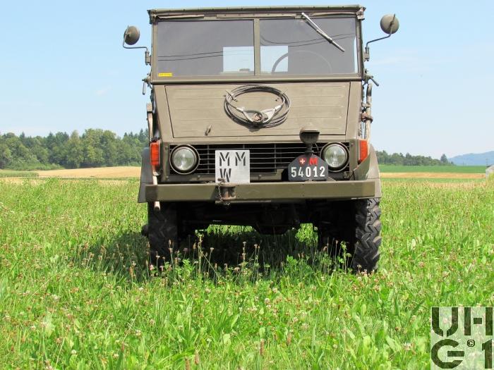 | Getriebe | Hauptgetriebe Hersteller Mercedes Benz Typ UG 1 / 11 Mechanisches Zahnrad Wechselgetriebe mit Klauenschaltung Unsynchronisiert 6 Vorwärtsgänge 2 Rückwärtsgänge Stockschaltung 1. und 2. Gang für Gelände 3. bis 6. Gang für Strasse Rückwärtsfahren nur im 1. und 2. Gang möglich Separater Schalthebel für Rückwärtsgang Übersetzung 1. Gang 14,95:1 2. Gang 8,240:1 3. Gang 4,480:1 4. Gang 2,470:1 5. Gang 1,520:1 6. Gang 1,000:1 1. R-Gang 20,00:1 2. R-Gang 11,00:1 Verteilergetriebe Im Hauptgetriebe eingebaut Dient zum ein- und ausschalten des Vorderradantriebes Separater Schalthebel Bedienung der Schaltung Schalthebel Schwarz für: Hauptgetriebe Schalthebel Weiss für: Rückwärtsgang Schalthebel Grün für: Vorderradantrieb und Differentialsperren Schalthebel Blau für: Seilwinde und Zapfwelle |
