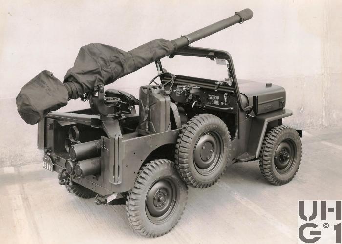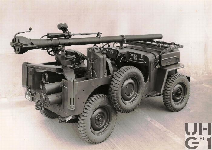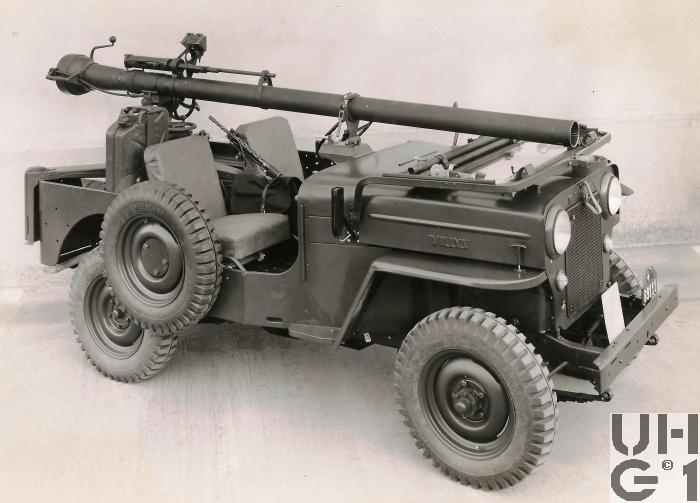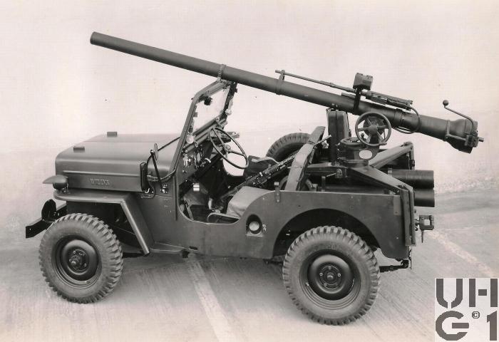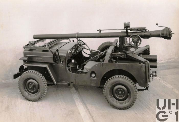 | Bemerkungen | Die 10,6 cm rsf Pak 58 ist ein Geschütz für den Kampf auf Entfernungen bis 700 m gegen fahrende und bis 900 m gegen stehende Panzer bzw gepanzerte Fahrzeuge. Mit der Kanone fest verbunden ist das 12,7 mm Einschiessgewehr. Es dient der praktischen Ermittlung von Schussdistanz und Vorhaltewinkel. M+Nummern* M+69103, M+69111, M+69113, M+69116, M+69119,M+69241, M+69244, M+71677, M+71914 *Datenquelle: Der Jeep erobert die Schweizer Armee Von Nik Oswald und Christoph Zimmerli https://shop.armeemuseum.ch/produkt-kategorie/buecher/ |