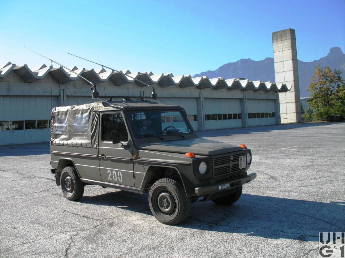 | Getriebe | Hauptgetriebe Hersteller Mercedes Benz Typ W 4 A 028 4 Vorwärtsgänge 1 Rückwärtsgang Vorderradantrieb während des fahrens zuschaltbar Geländeuntersetzung zuschaltbar Übersetzungen 1. Gang 4,007:1 2. Gang 2,392:1 3. Gang 1,463:1 4. Gang 1,000:1 R. Gang 5,495:1 Verteilergetriebe Hersteller Mercedes Benz Typ VG 080 Zweiwellen Verteilergetriebe mit synchronisiertem Geländegang Übersetzung 1,00:1 Strassengang 2,14:1 Geländegang Bedienung der Schaltung Die Schaltung sowohl der Geländeübersetzung als auch des Allradantriebes erfolgt mit einem zentralen Schalthebel "S" Strassengang, Hinterradantrieb "SA" Strassen-Allradantrieb, zusätzlich werden die Vorderräder angetrieben "GA" Geländeallradantrieb, zusätzlich zum Allradantrieb ist die Geländeübersetzung eingeschaltet Differentialsperre Schaltgriff neben dem Schalthebel nach oben ziehen, die Diff-Sperre der Hinterachse ist eingeschaltet |