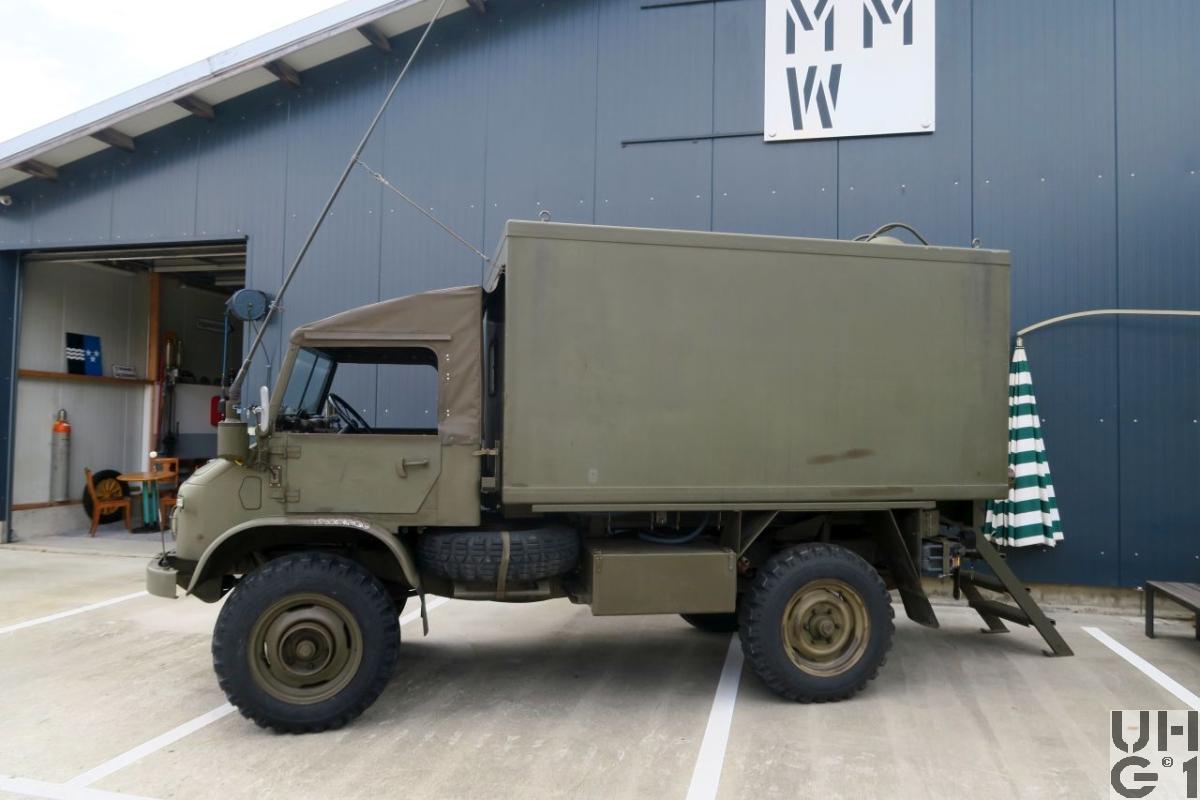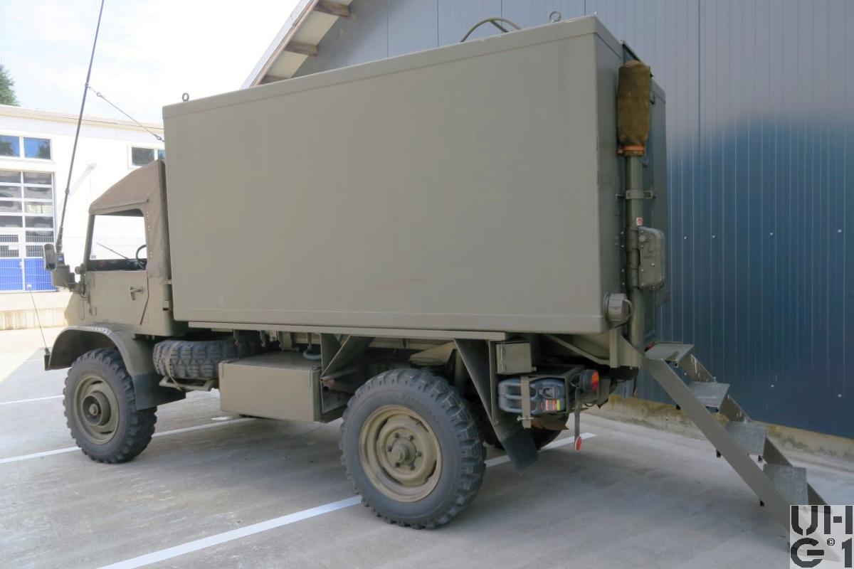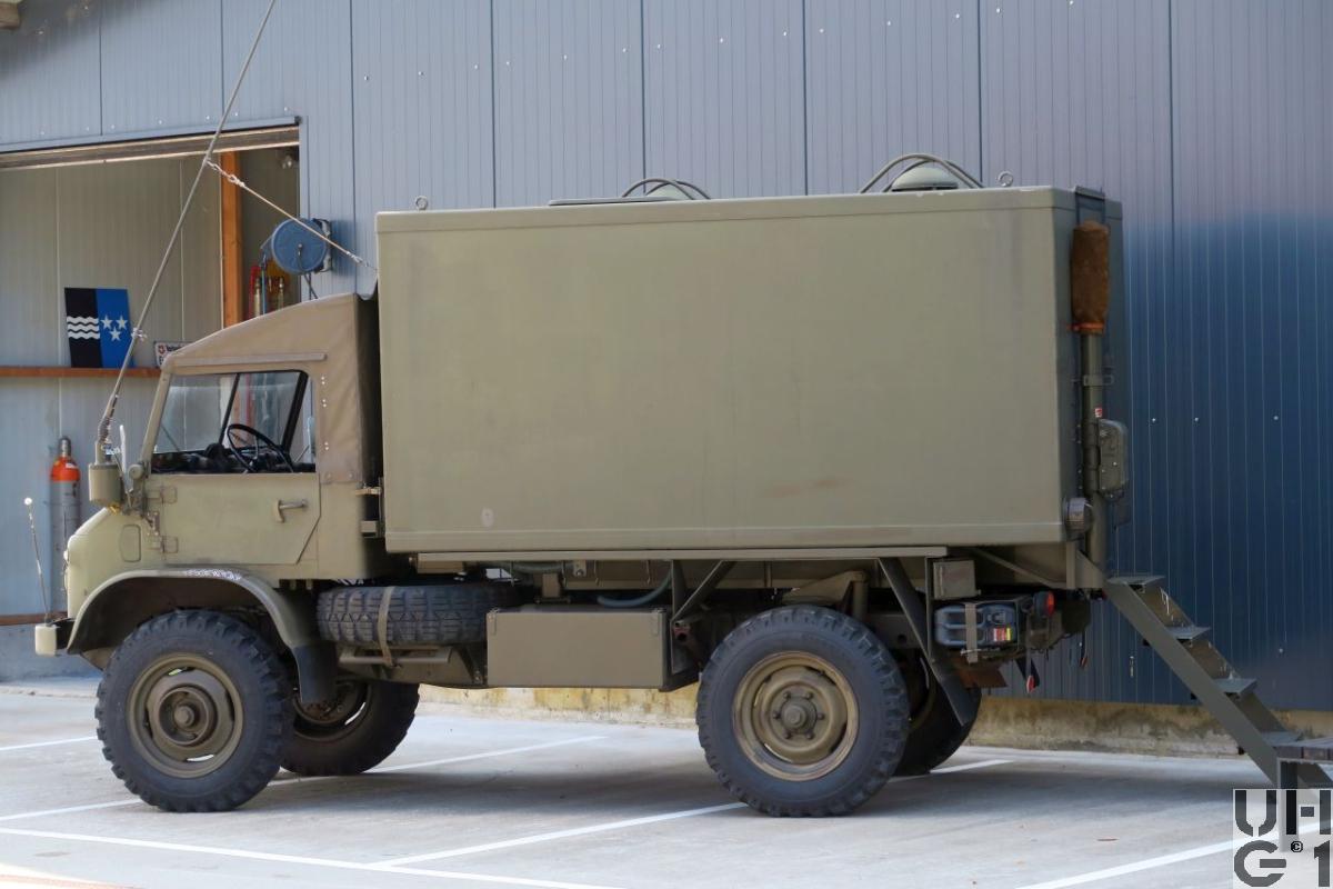 | Bemerkungen | M+Nummern M+40100 bis M+40194 Von den 150 Unimog S, die als Batteriefeuerleitstellen im Korpsmaterial der Artillerie zugeteilt waren, wurden in den 80ziger Jahren 95 Stück mit einem Shelter aus Glasfaserverbundmaterial ausgerüstet und für das elektronische Feuerleitsystem FARGO verwendet. |