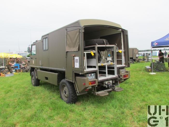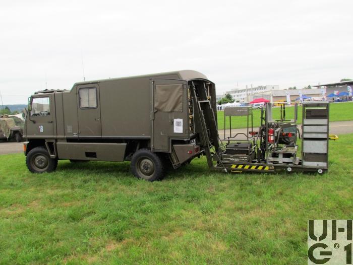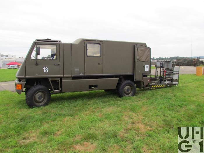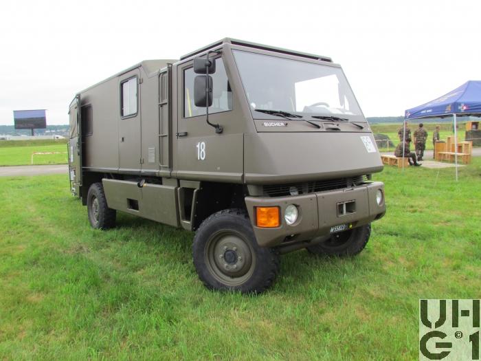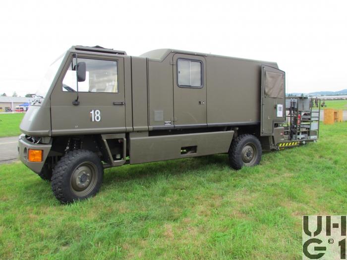 | Getriebe | Hauptgetriebe Hersteller Mercedes Benz Typ W 4 A 028 4 Gang Automat hydraulisch gesteuert 4 Vorwärtsgänge 1 Rückwärtsgang Übersetzung 1. Gang 3,871:1 2. Gang 2,247:1 3. Gang 1,436:1 4. Gang 1,000:1 R-Gang 5,586:1 Verteilergetriebe Hersteller Bucher Typ V-2GS-TD 15 Synchronisiertes 2- Stufen Verteilergetriebe mit Torsen Längsdifferential 1 Stufe Strassenstufe 1 Stufe Berg- / Geländestufe Übersetzung 0,71:1 Strassengang 1,42:1 Geländegang |