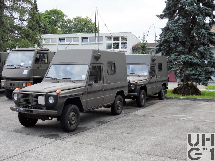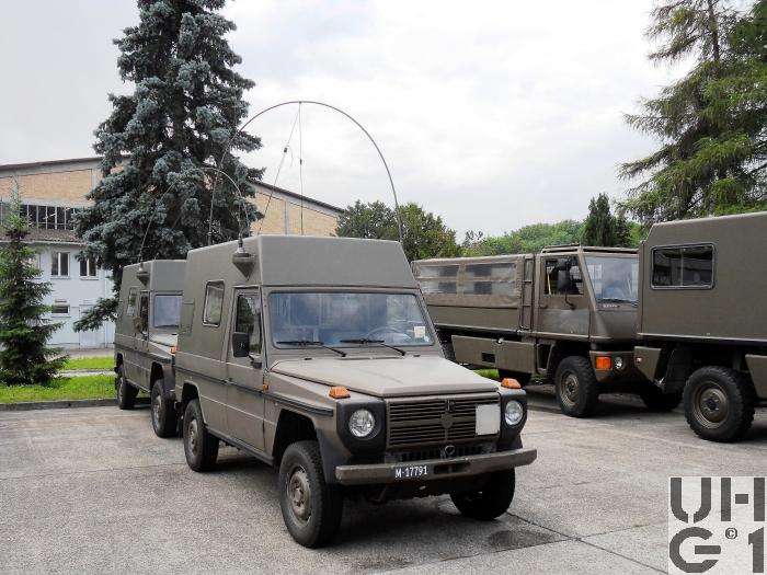 | Getriebe | Hauptgetriebe Hersteller Mercedes Benz Typ W 4 A 028 4 Vorwärtsgänge 1 Rückwärtsgang Vorderradantrieb während des fahrens zuschaltbar Geländeuntersetzung zuschaltbar Übersetzungen 1. Gang 4,007:1 2. Gang 2,392:1 3. Gang 1,463:1 4. Gang 1,000:1 R. Gang 5,495:1 Verteilergetriebe Hersteller Mercedes Benz Typ VG 080 Zweiwellen Verteilergetriebe mit synchronisiertem Geländegang Übersetzung 1,00:1 Strassengang 2,14:1 Geländegang Bedienung der Schaltung Die Schaltung sowohl der Geländeübersetzung als auch des Allradantriebes erfolgt mit einem zentralen Schalthebel "S" Strassengang, Hinterradantrieb "SA" Strassen-Allradantrieb, zusätzlich werden die Vorderräder angetrieben "GA" Geländeallradantrieb, zusätzlich zum Allradantrieb ist die Geländeübersetzung eingeschaltet Differentialsperre Schaltgriff neben dem Schalthebel nach oben ziehen, die Diff-Sperre der Hinterachse ist eingeschaltet |