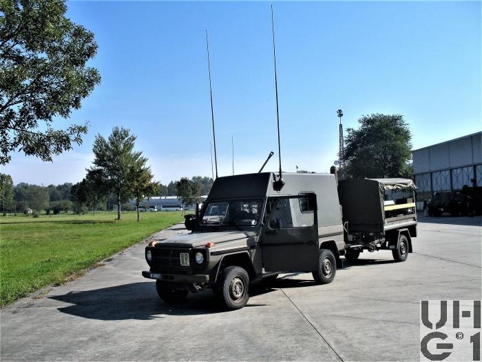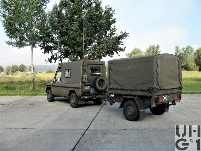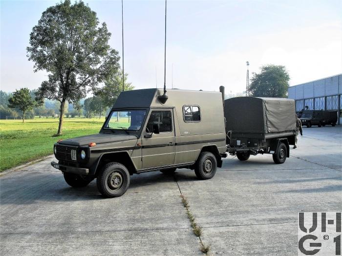 | Getriebe | Hauptgetriebe Hersteller Mercedes Benz Typ W 4 A 028 4 Vorwärtsgänge 1 Rückwärtsgang Vorderradantrieb während des fahrens zuschaltbar Geländeuntersetzung zuschaltbar Übersetzungen 1. Gang 4,007:1 2. Gang 2,392:1 3. Gang 1,463:1 4. Gang 1,000:1 R. Gang 5,495:1 Verteilergetriebe Hersteller Mercedes Benz Typ VG 080 Zweiwellen Verteilergetriebe mit synchronisiertem Geländegang Übersetzung 1,00:1 Strassengang 2,14:1 Geländegang Bedienung der Schaltung Die Schaltung sowohl der Geländeübersetzung als auch des Allradantriebes erfolgt mit einem zentralen Schalthebel "S" Strassengang, Hinterradantrieb "SA" Strassen-Allradantrieb, zusätzlich werden die Vorderräder angetrieben "GA" Geländeallradantrieb, zusätzlich zum Allradantrieb ist die Geländeübersetzung eingeschaltet Differentialsperre Schaltgriff neben dem Schalthebel nach oben ziehen, die Diff-Sperre der Hinterachse ist eingeschaltet |