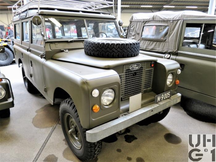 | Bemerkungen | Einsatz Die 120 Stück Land Rover 109 Series II und IIA von 1959 bis 1971 und Series III von 1971 bis 1984 wurden für das Grenzwachtkorps in verschieden Tranchen beschafft. Änderungen gegenüber Series II und IIa Kunststoff Armaturenbrett Spiegel an den Türen Serienmässig voll synchronisiertes Getriebe Kühlergrill aus Plastik Scheinwerfer in den vorderen Kotflügeln (wie schon bei den letzten Modellen der Serie IIa) Serienmässig stärkere Hinterachse |
