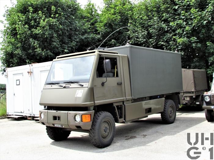 | Bemerkungen | Fahrzeugaufbau Funksystem 4 Stück SE-235 + 1 Stück SE-240 Besatzung 1 Fahrzeug Kommandant 1 Fahrer 4 Operateur Ausrüstung 1 Bildschirm APSI-TT8M im Fahrerraum 2 Bildschirme APSI-DI-15M im Aufbau 1 Feldtelefon 50A mit Microtel in der Kabine 1 Feldtelefon 50A mit Microtel im Aufbau 3 Arbeitsstationen APSI-15D mit Zubehör im Aufbau verteilt 1 GPS-C Fis im Fahrzeug installiert 1 Stromaggregat Kirsch 6 kVA Anhänger 87 zu Fhr W FIS HE Gerätesortiment und Zubehör |