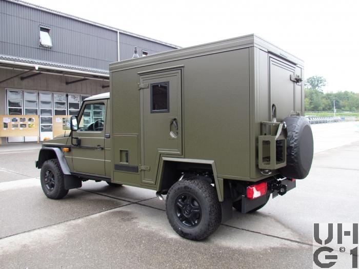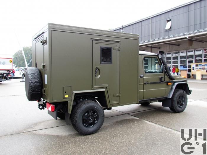 | Bemerkungen | Lieferanten Fahrgestell Mercedes Benz, Schweiz Aufbau Carrosserie Hess AG, Bellach Aufbau Chassis/Kabine mit Kastenaufbau 4 Sitzplätzen Vorbereitung Fachsystemeinbau Gewehrhalterungen |